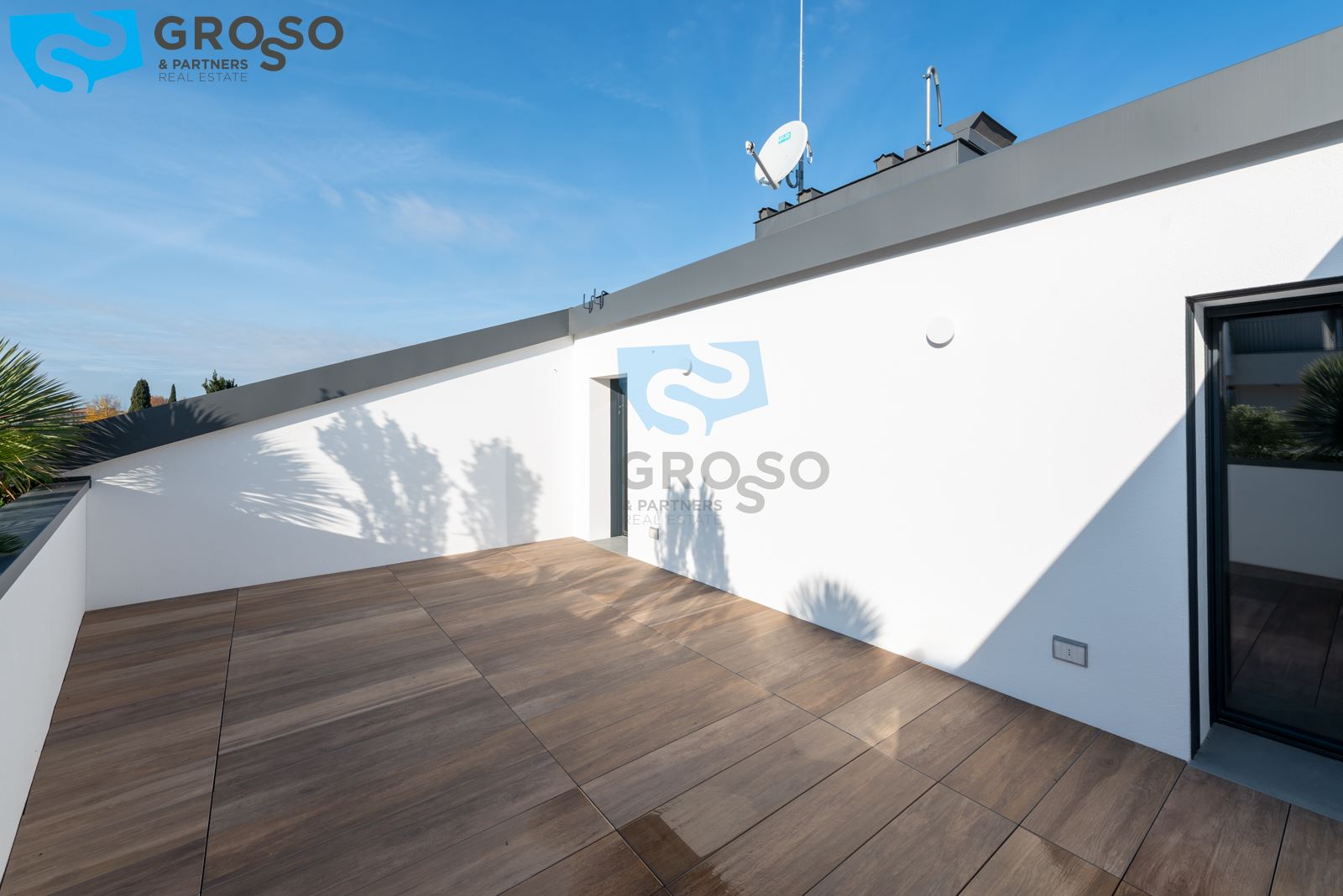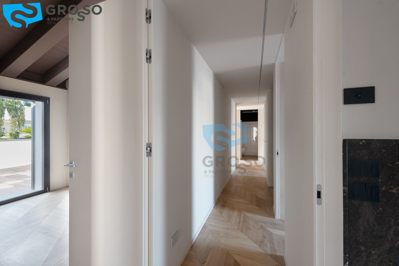 Tutti gli appartamenti dispongono di ampie terrazze abitabili e/o giardini privati, oltre a garage e posto auto. Il fabbricato è servito da ascensore.