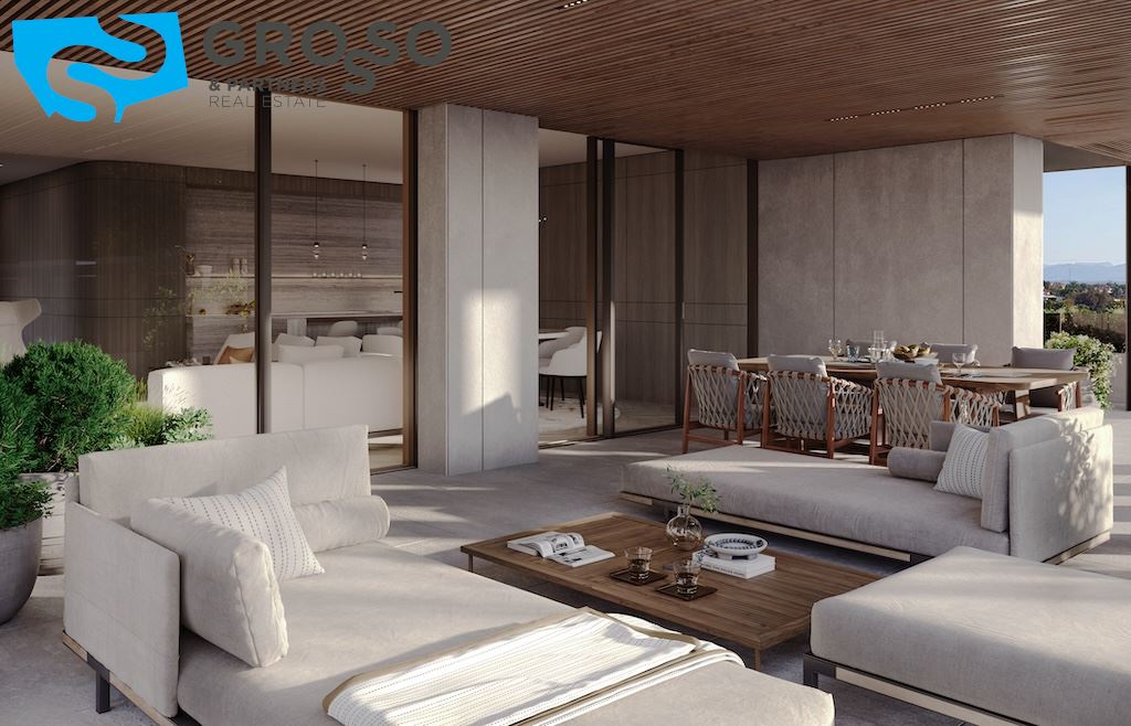 L'appartamento in oggetto è un duplex che si sviluppa su due piani: al piano terra si trova un accogliente soggiorno con zona pranzo e una cucina a vista che favorisce una conviviale interazione tra gli spazi. E' presente anche un bagno di servizio, mentre l'area scoperta privata di 203 mq offre un'ottima opportunità per godere di momenti all'aperto, perfetta per rilassarsi o per eventi sociali. Al primo piano si trovano tre camere da letto, una matrimoniale e due singole, che garantiscono spazio e privacy per tutta la famiglia. Il piano è completato da due bagni, rendendo gli spazi funzionali e adatti anche a famiglie numerose. Una terrazza di 46 mq si estende lungo il perimetro del piano primo, offrendo un'area ideale per godere del panorama circostante e trascorrere piacevoli momenti all'aria aperta.