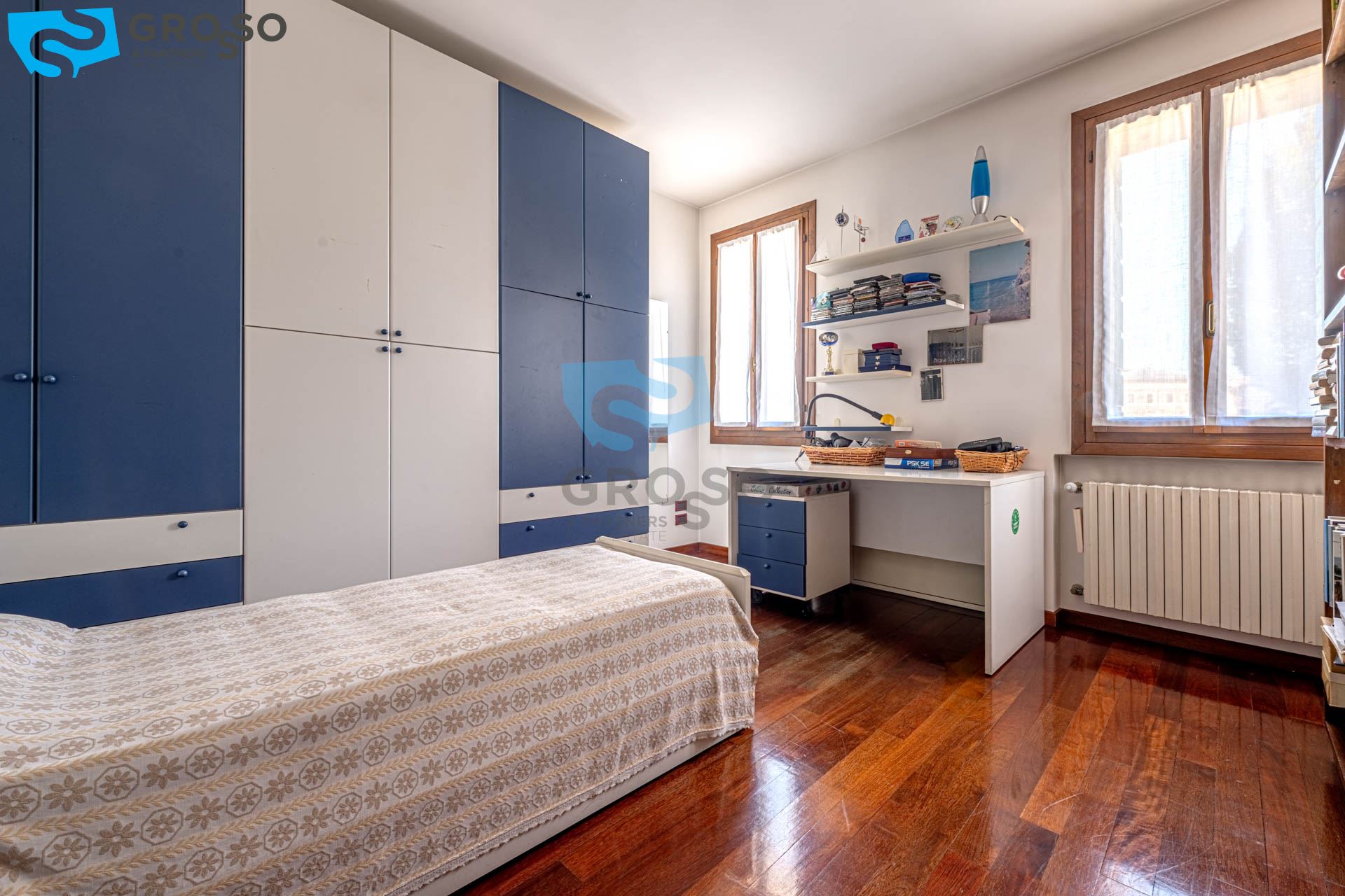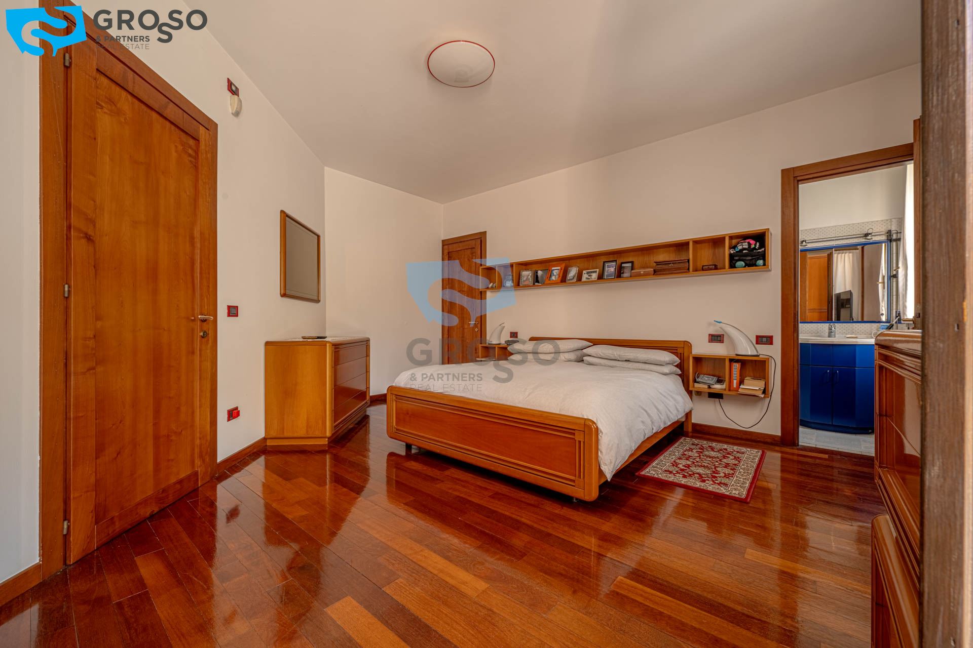 Al primo piano si sviluppa la zona notte, composta da una camera padronale con cabina armadio, bagno privato e terrazzino riservato, perfetto per i momenti di quiete. Completano il piano due ulteriori camere matrimoniali e un secondo bagno a servizio, ideali per accogliere una famiglia numerosa con comfort e privacy.