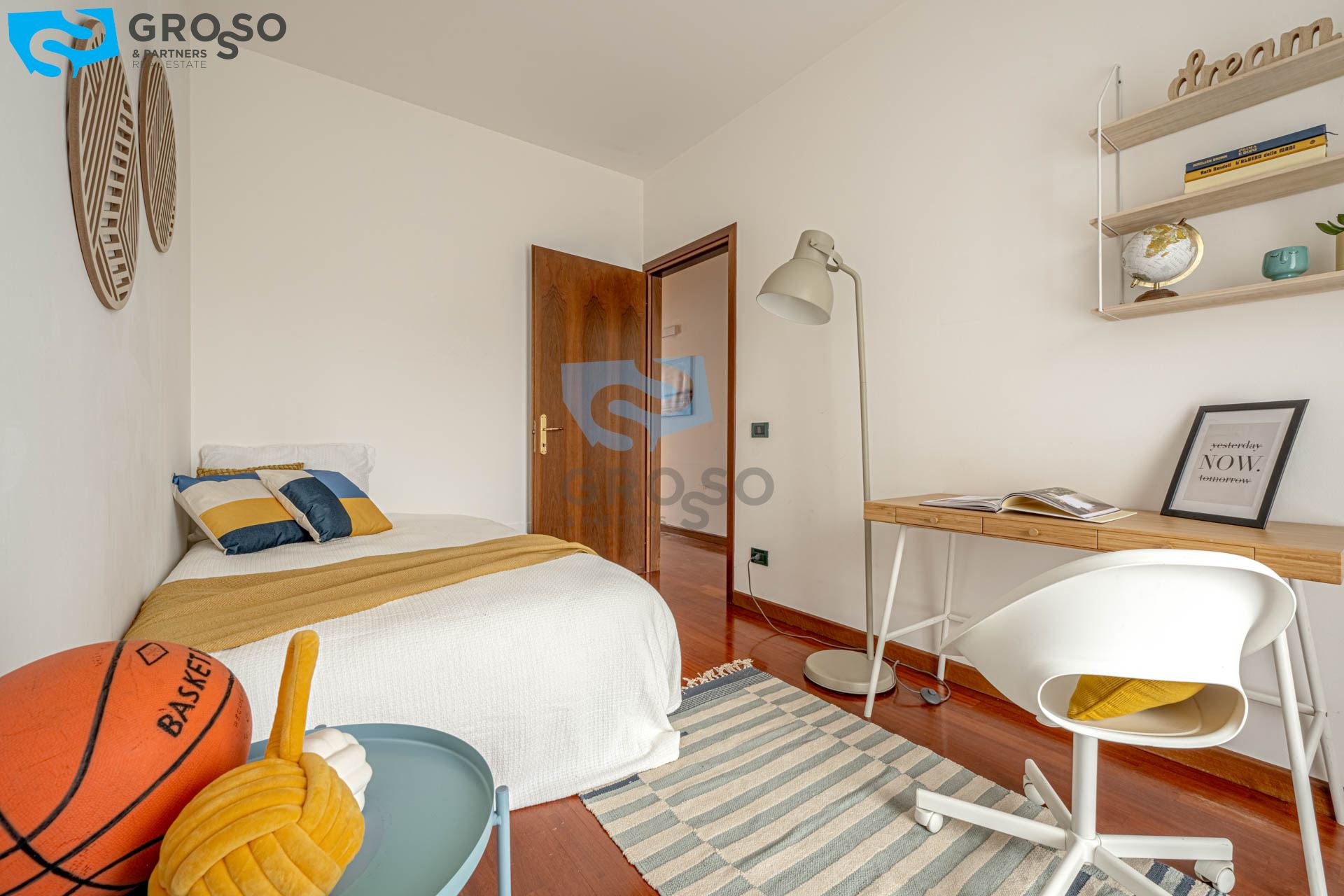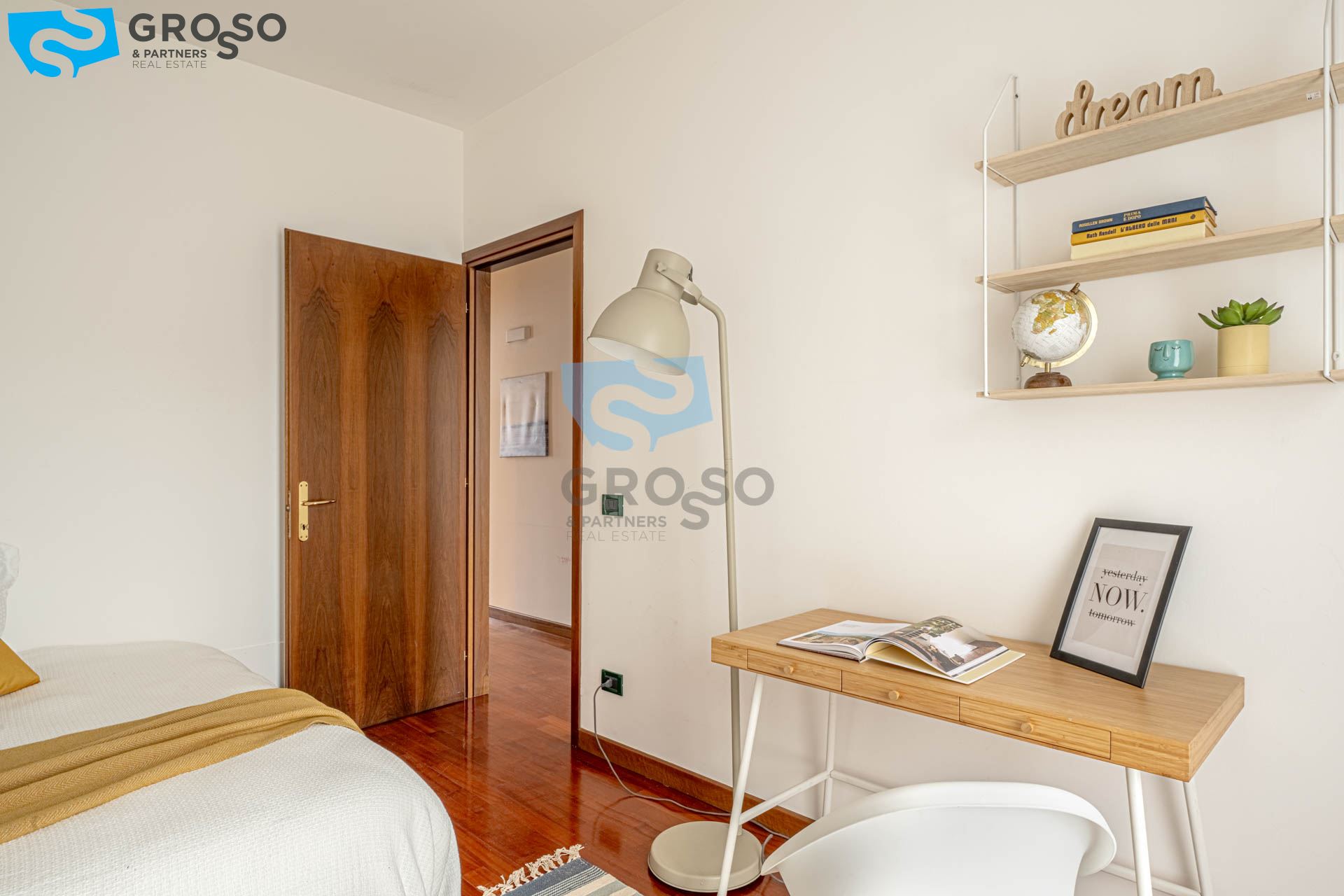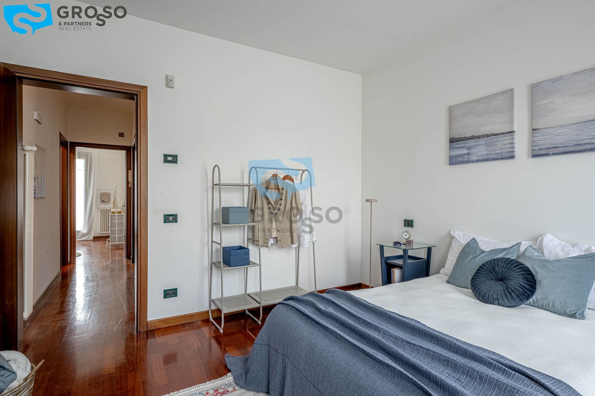 Il piano primo è dedicato alla zona notte e ospita tre camere da letto ben dimensionate, due bagni, un disimpegno che garantisce una distribuzione armoniosa degli spazi, oltre a una loggia e a un poggiolo che assicurano luce naturale e sfoghi esterni.