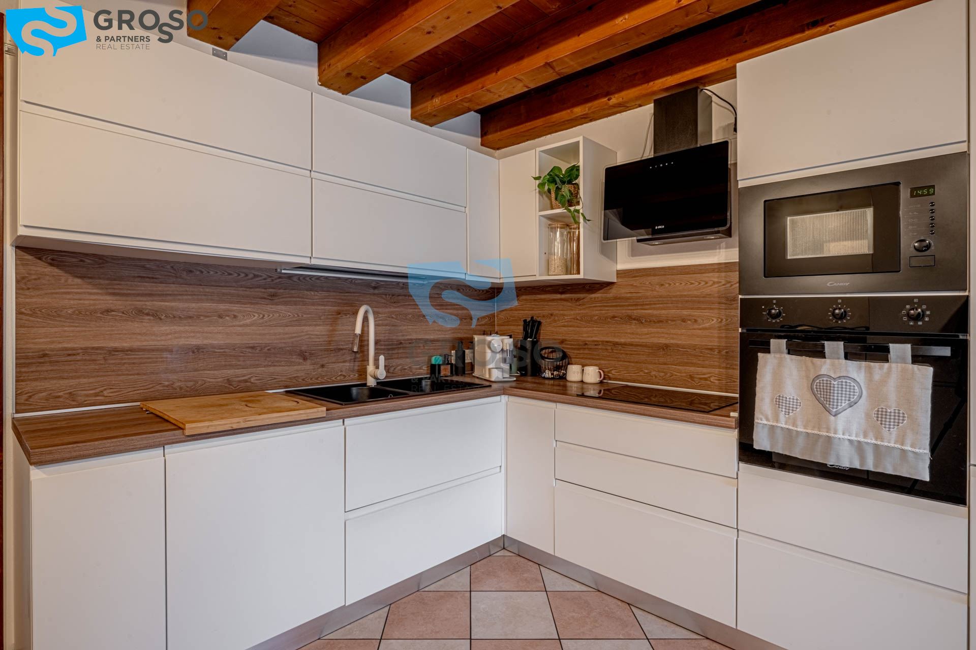 L'abitazione, di circa 130 mq, accoglie con una zona giorno calda e luminosa dove il soggiorno, ben definito e accogliente, dialoga con la cucina separata creando un equilibrio perfetto tra convivialità e funzionalità.