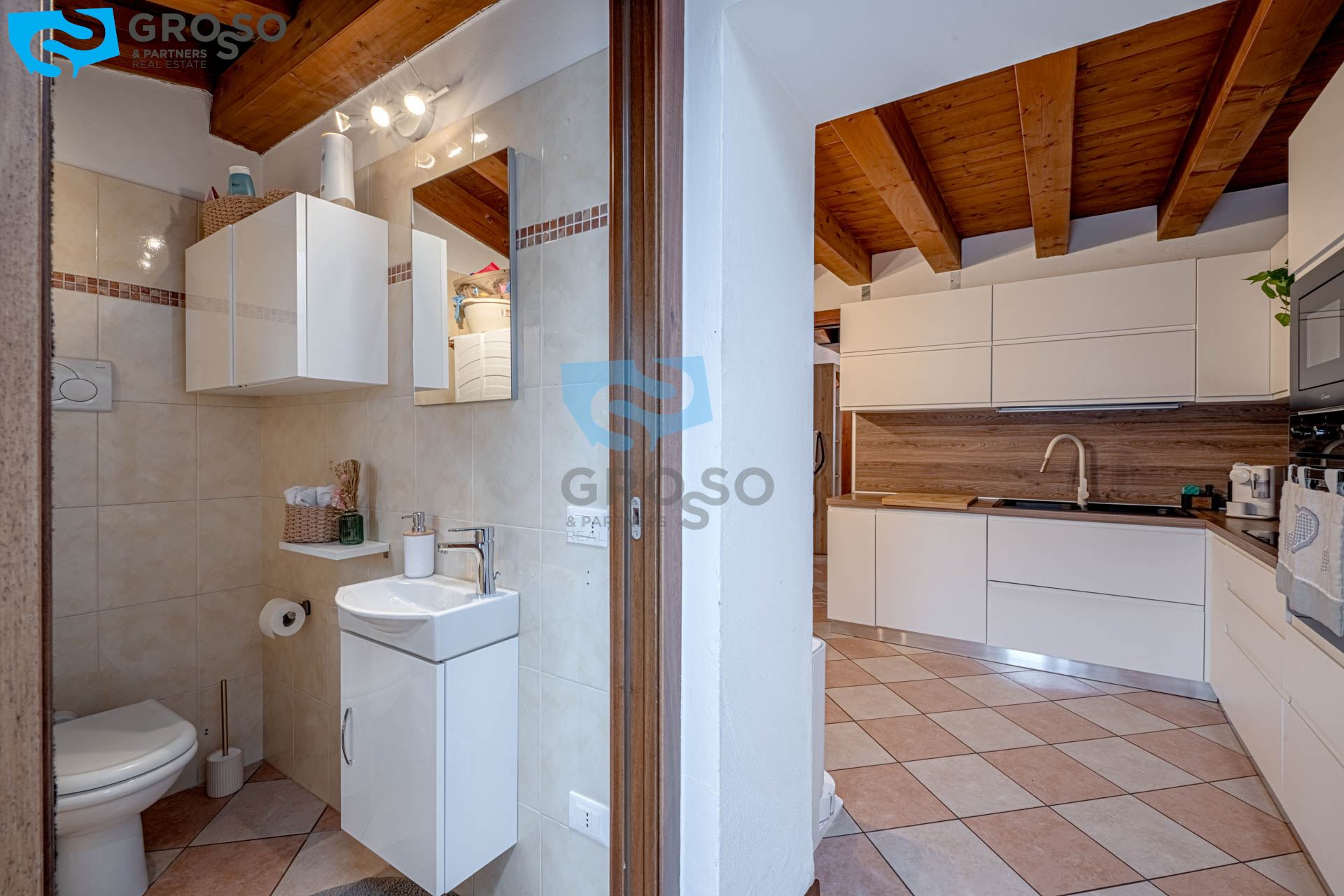 Al piano terra troviamo inoltre un bagno con doccia e una comoda zona lavanderia e un accesso diretto all'esterno, pratica per la gestione quotidiana della casa.