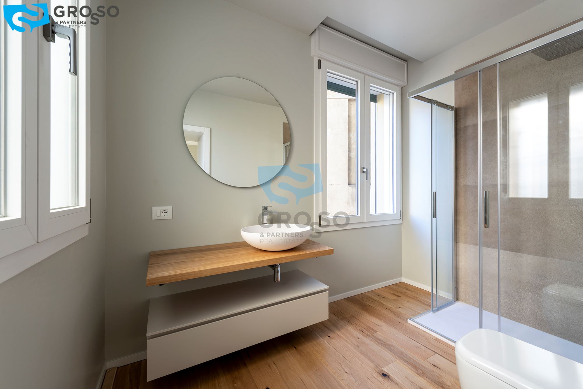 Grosso&Partners ha il piacere di proporre nel cuore del centro storico di Treviso, nelle vicinanze della Stazione dei Treni e di Piazza dei Signori, un elegante appartamento completamente ristrutturato e arredato a nuovo, ideale per chi desidera vivere la città con comfort e stile. L’immobile, situato all’interno di un condominio signorile che ospita sia appartamenti che uffici, è stato oggetto di una ristrutturazione radicale che ha saputo coniugare il fascino dell’architettura storica con le più moderne soluzioni abitative.