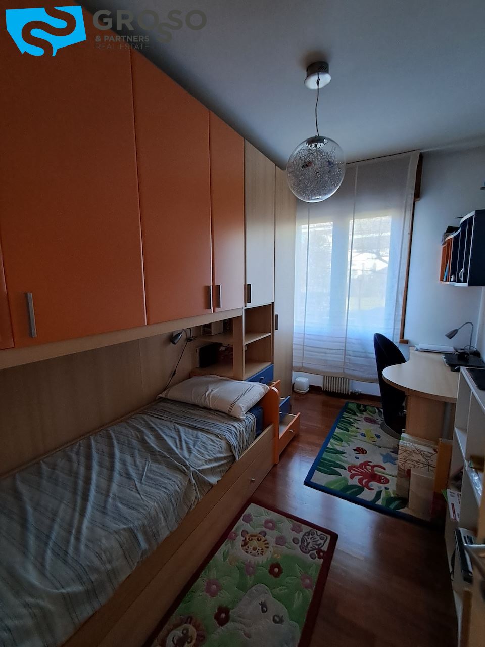 Proseguendo nella zona notte si trova un disimpegno ben organizzato, dotato di ripostiglio utile per ottimizzare gli spazi. Da qui si accede a due bagni, di cui uno finestrato, e a due camere da letto, tra cui una spaziosa matrimoniale. L'appartamento offre quindi una soluzione abitativa adatta sia a famiglie che a chi cerca comfort e funzionalità in un contesto riservato.