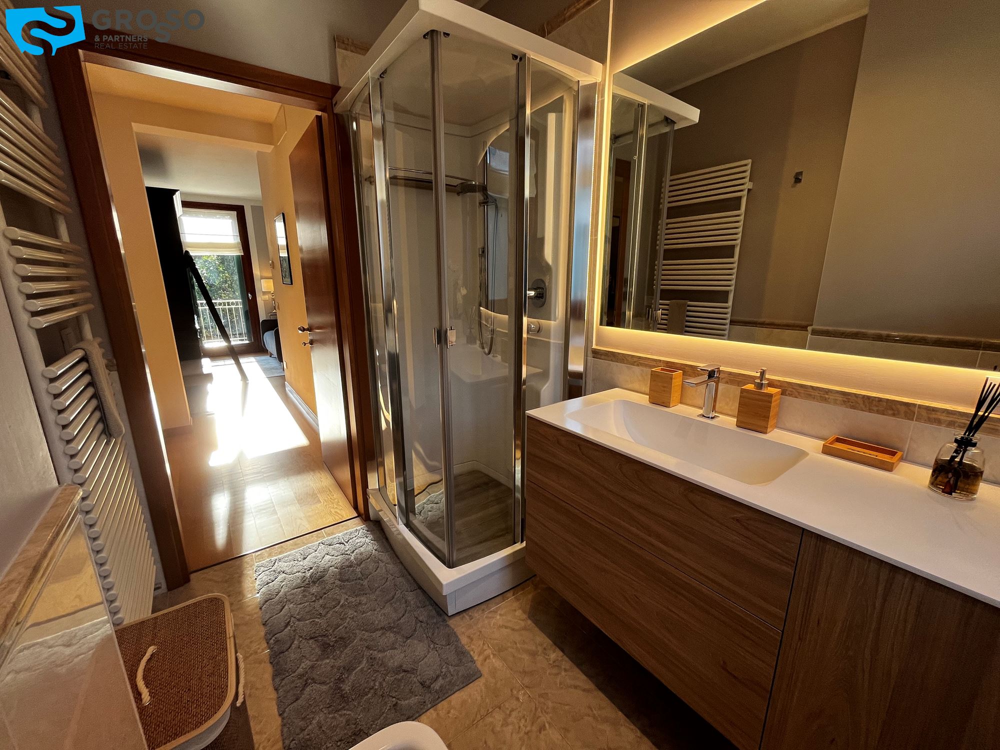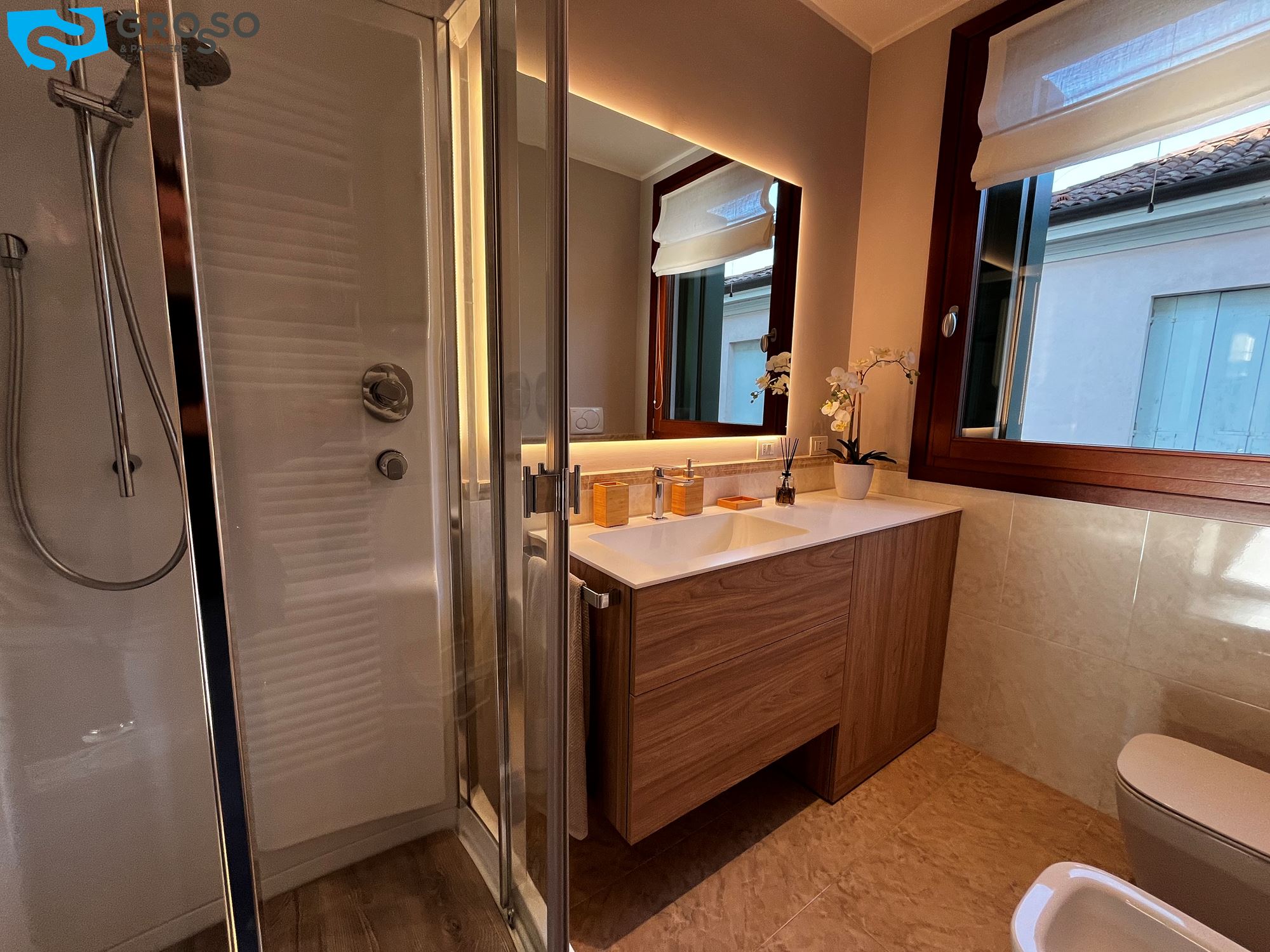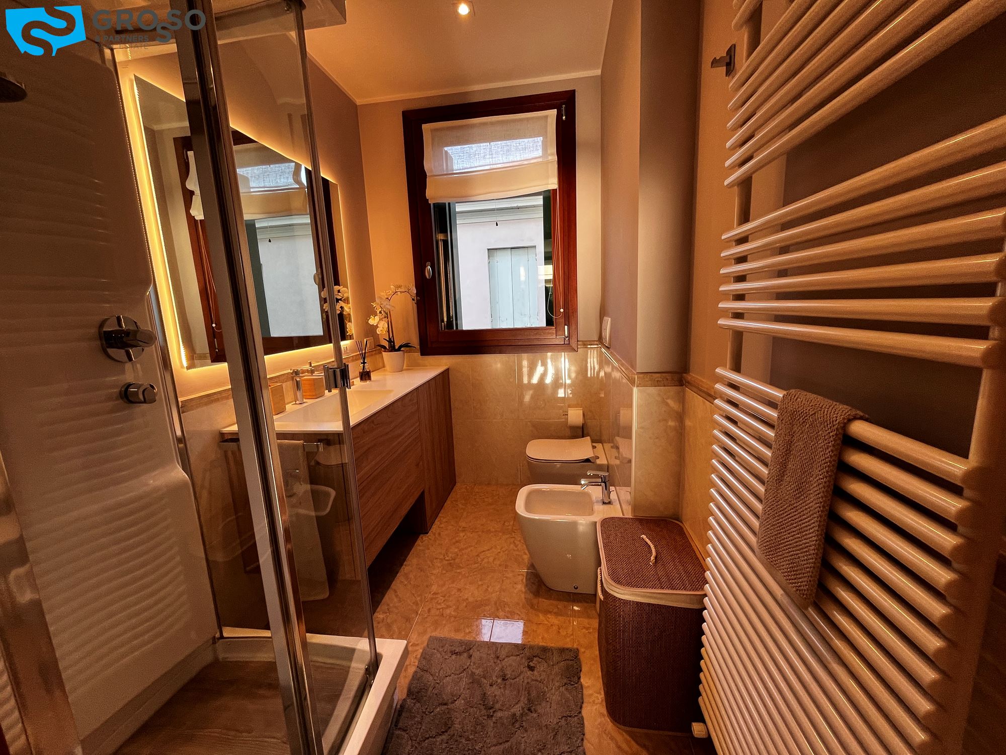 Il riscaldamento è autonomo a radiatori, sono presenti inoltre l'aria condizionata e le zanzariere.