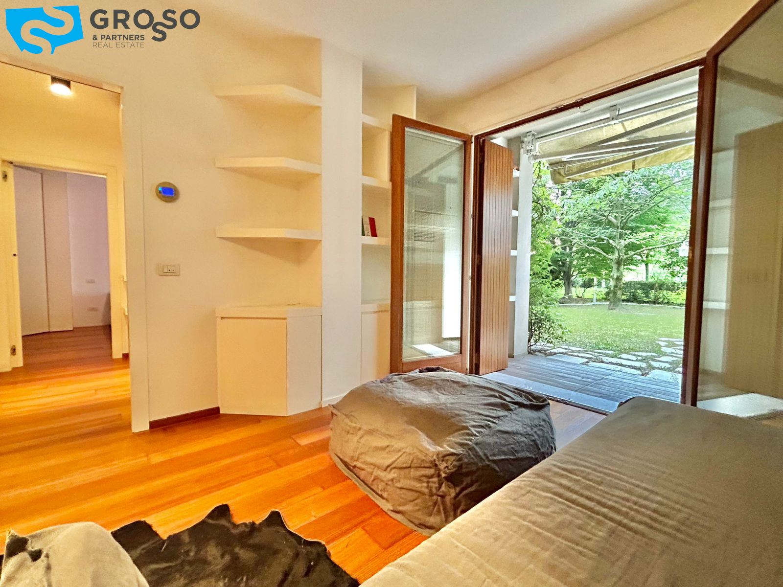Viene affittato completamente arredato, con un posto auto scoperto interno alla corte condominiale. Libero da giugno. Solo persone referenziate e che vogliano prendersi cura del giardino.