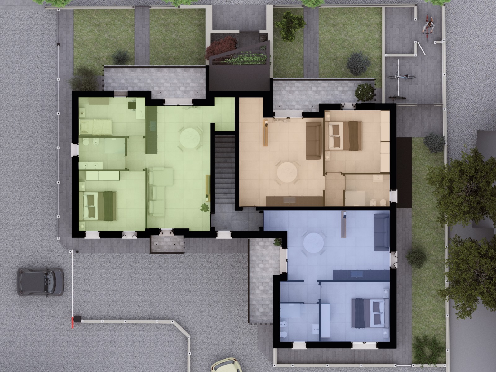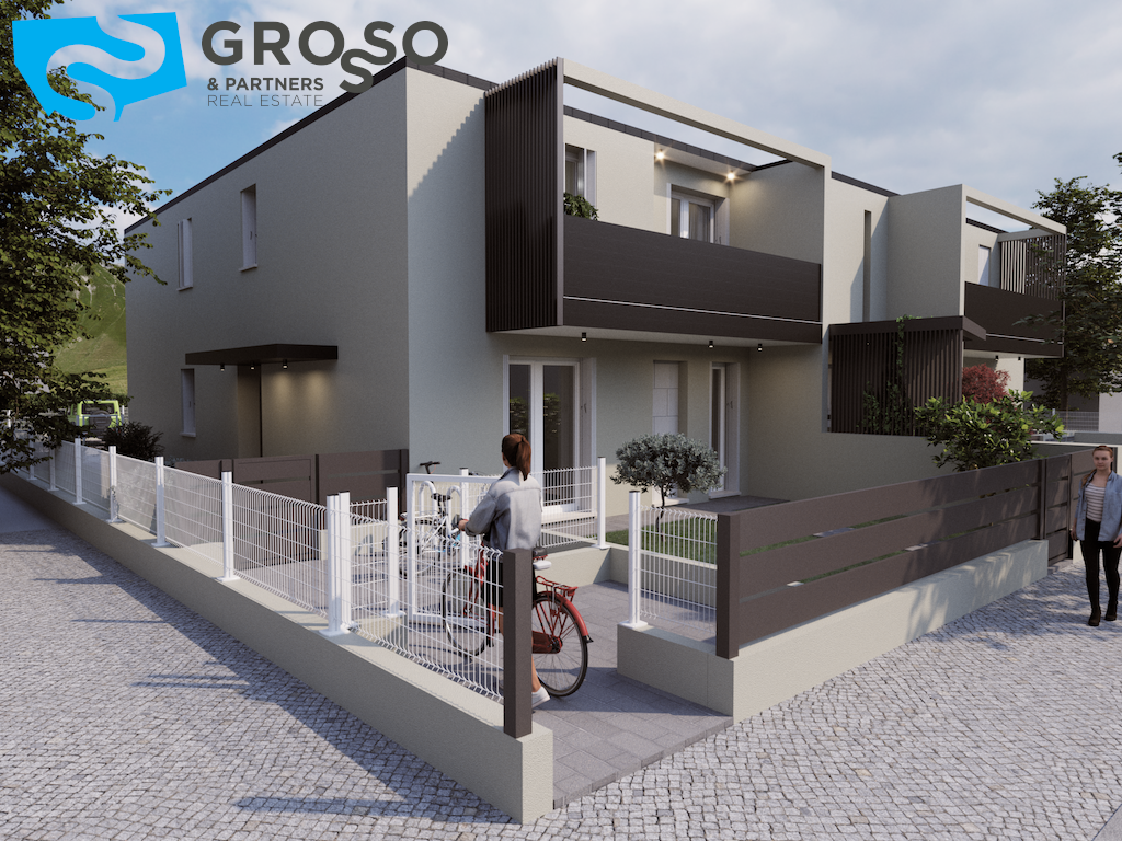 Gli appartamenti sono suddivisi in bilocali da 50 mq e trilocali da 60 mq e 65 mq, distribuiti equamente su due livelli: piano terra e primo piano. Le unità abitative al piano terra dispongono di giardini esterni ad uso esclusivo di 30 mq e di ingressi indipendenti dalla principale via pedonale. Queste soluzioni sono ideali per chi desidera rimanere a contatto con la natura e cerca l'indipendenza di una casa singola.