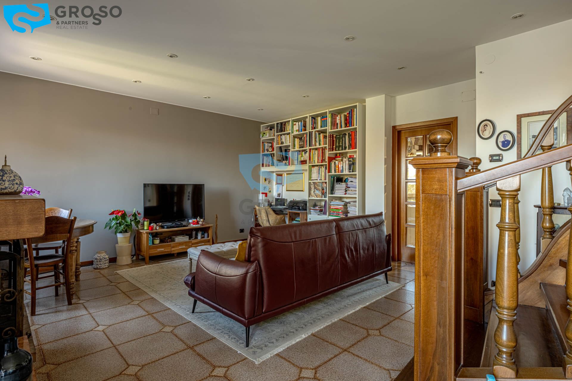 Al piano terra si trovano l' autorimessa, la cantina e la lavanderia, spazi funzionali e pratici che completano la zona di servizio dell'abitazione. Salendo al primo piano si accede alla zona giorno, caratterizzata da un elegante soggiorno con camino, che regala un'atmosfera calda e familiare, e da una cucina separata con zona pranzo, luminosa e ben organizzata. Da quest'ultima si apre una spaziosa terrazza, perfetta per pranzi all'aperto e momenti di relax. Il secondo piano ospita la zona notte, composta da una camera matrimoniale con cabina armadio, due camere singole entrambe dotate di terrazzo privato, e un bagno finestrato curato nei dettagli.