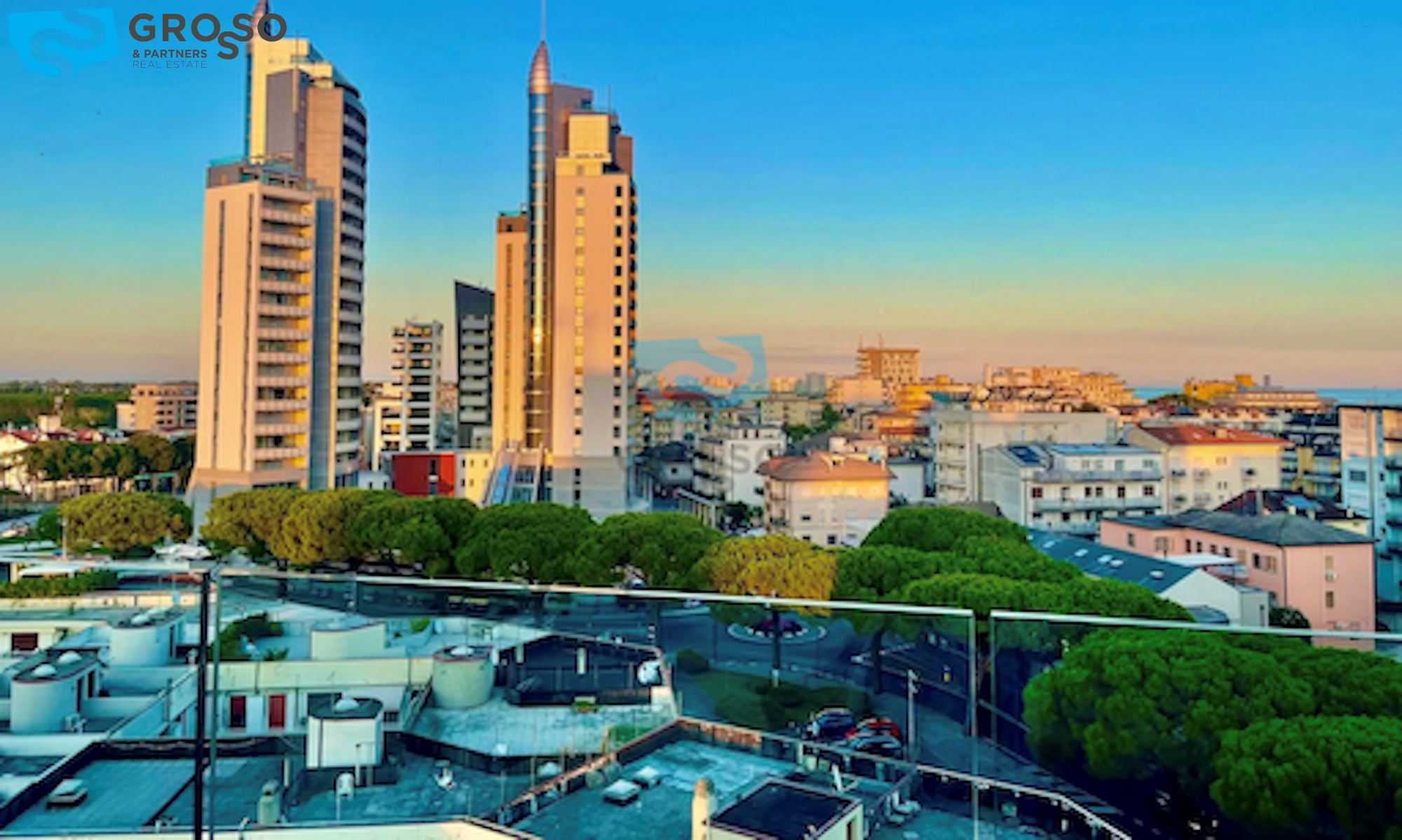 Al settimo piano del prestigioso complesso UP TOWN, a soli 300 m dalla spiaggia e a pochi passi da Piazza Drago, proponiamo moderno appartamento in palazzina di sole nove unità. L' edificio, sviluppato su dieci piani, rappresenta un nuovo riferimento nel cuore di Lido di Jesolo grazie al design contemporaneo e ai grandi terrazzi, vero tratto distintivo delle residenze. L' appartamento offre un luminoso soggiorno con angolo cottura e ampie vetrate che si affacciano sul terrazzo abitabile. La zona notte comprende due camere matrimoniali, di cui una con bagno privato dotato di box doccia, oltre a un secondo bagno finestrato, anch'esso con box doccia. Sono presenti inoltre due terrazze, entrambe ideali per ammirare una meravigliosa vista panoramica su Jesolo. Completano la proprietà un comodo posto auto coperto da pompeiana, riscaldamento autonomo a pavimento e raffrescamento canalizzato. Una soluzione esclusiva, moderna e confortevole, ideale per vivere Jesolo tutto l'anno o come elegante casa vacanze.