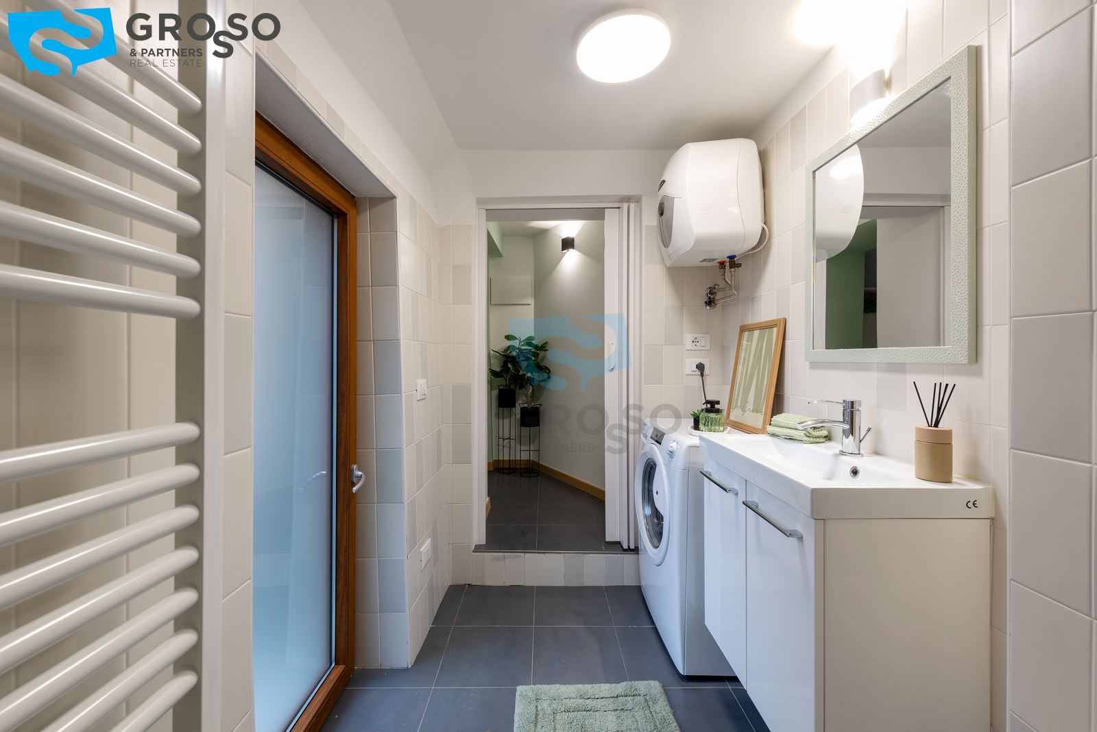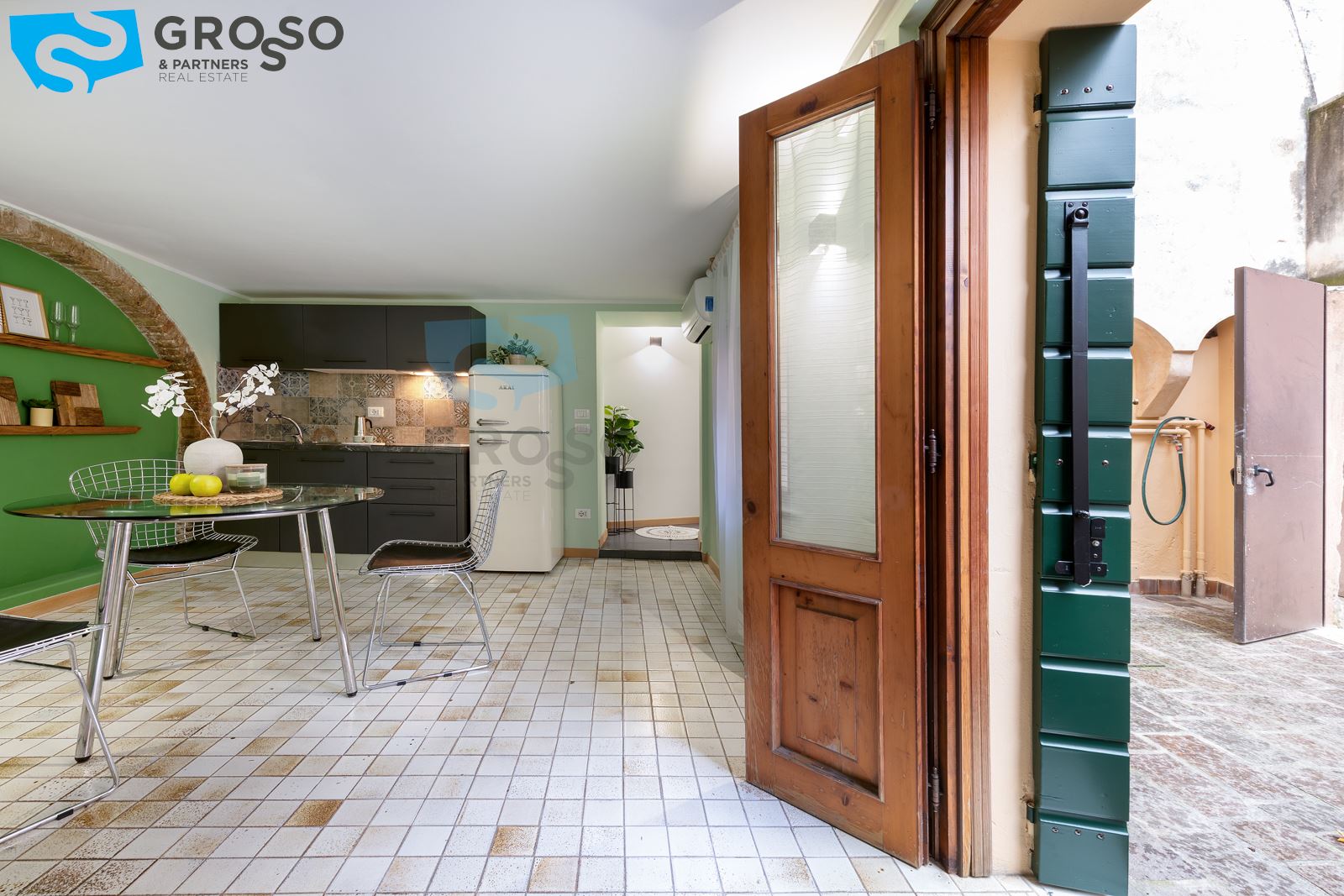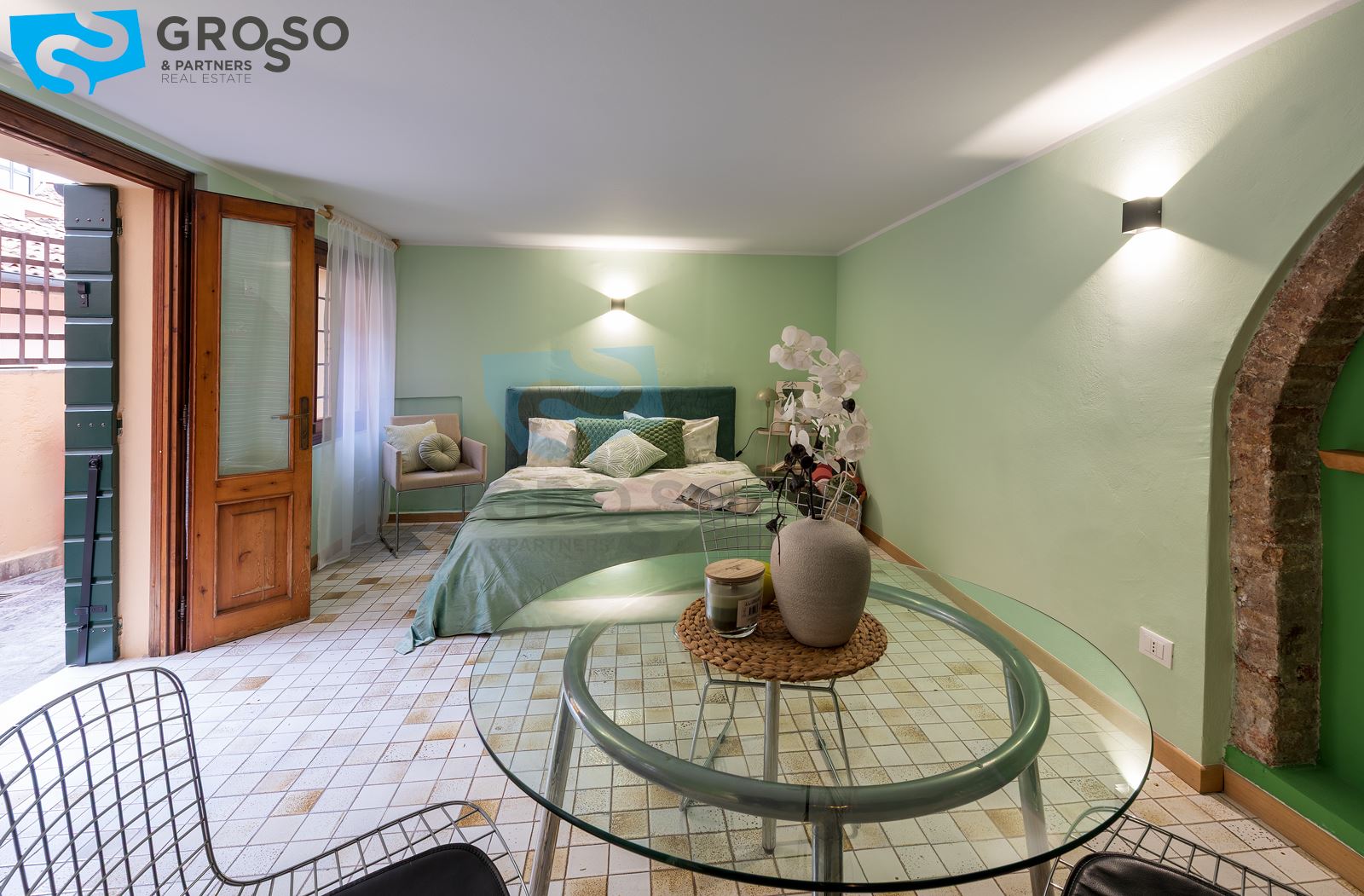 L'immobile è composto da un luminoso soggiorno con zona pranzo e cucina a vista, camera matrimoniale e bagno con doccia. L'appartamento è dotato di riscaldamento autonomo a radiatori e aria condizionata con split.