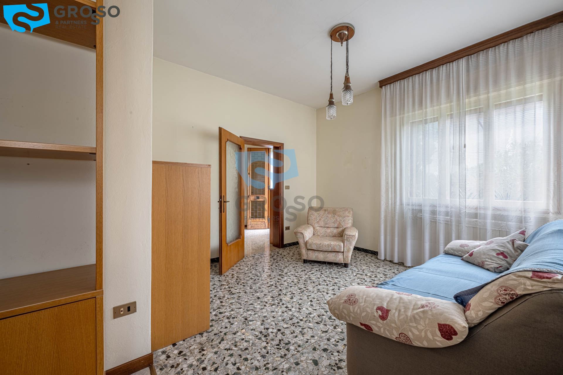 In una tranquilla zona residenziale di Sant'Angelo, comoda a tutti i servizi ma immersa in un contesto di sole villette, proponiamo in vendita una casa singola degli anni '60, disposta su due piani fuori terra.