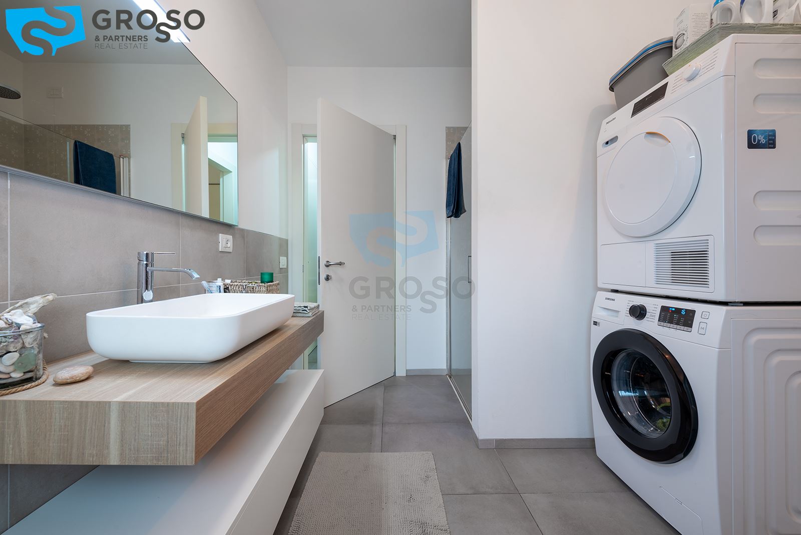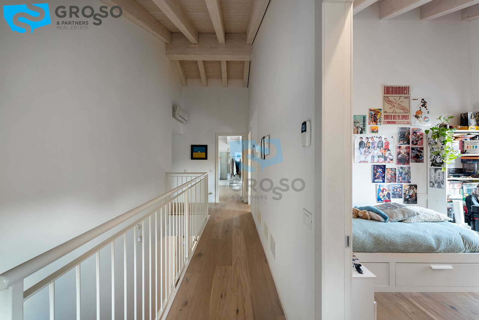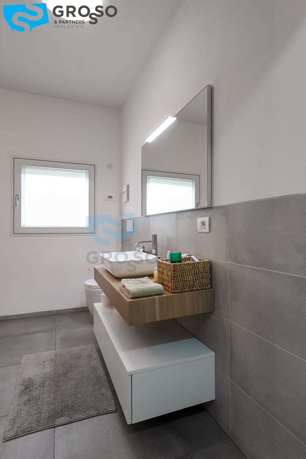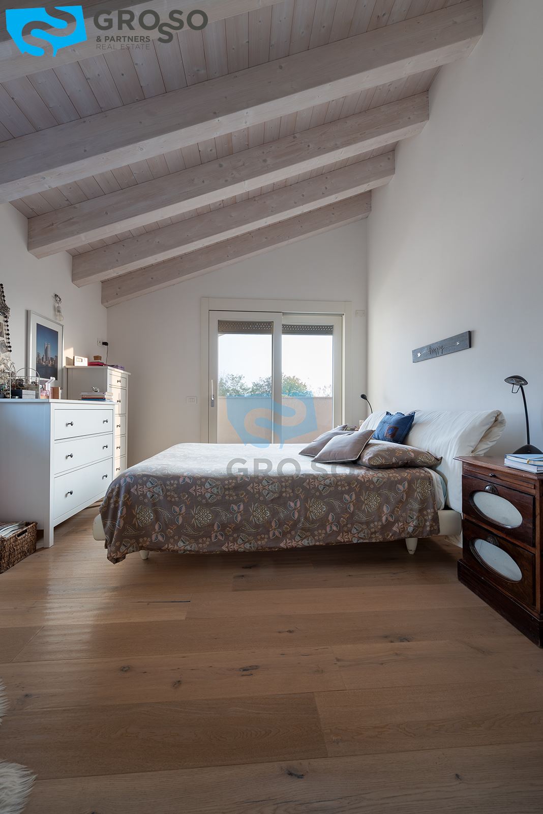 A Ponzano Veneto, in una tranquilla zona residenziale immersa nel verde, proponiamo in vendita una casa indipendente edificata nel 2016, caratterizzata da spazi moderni, ottime finiture e un ampio scoperto privato di 813 mq. L'abitazione si sviluppa su due livelli fuori terra e offre ambienti luminosi e ben distribuiti, ideali per chi desidera comfort, privacy e qualità costruttiva. Al piano terra l'ingresso conduce a un accogliente soggiorno con zona pranzo, collegato alla cucina abitabile separata dalla quale si accede al portico esterno, perfetto per pranzi e cene all'aperto durante la bella stagione. Sullo stesso livello si trovano un bagno per gli ospiti con doccia, la centrale termica e il garage comunicante, oltre a due posti auto esterni che completano la praticità degli spazi. La zona notte, situata al piano primo, comprende una camera matrimoniale e tre camere singole, tutte servite da una loggia che si sviluppa lungo l'intero perimetro, regalando continuità tra ambienti interni ed esterni e piacevoli affacci sul giardino. Il piano è completato da un bagno con doccia e da un comodo magazzino utilizzabile anche come stanza armadio. L'immobile è dotato di riscaldamento autonomo a pavimento, aria condizionata e impianto fotovoltaico da 2,9 kW, garanzie di efficienza energetica e contenimento dei consumi. Una soluzione recente, indipendente e subito abitabile, ideale per chi cerca una casa moderna circondata da un ampio spazio esterno in un contesto residenziale riservato e ben servito.