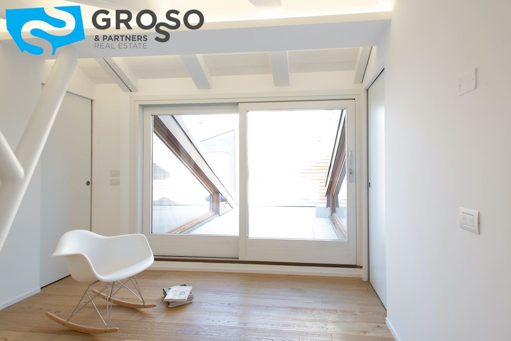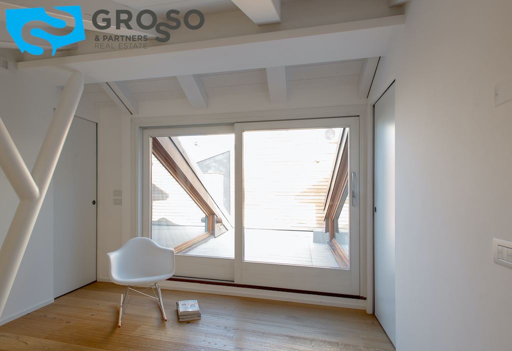 Treviso calato in un prestigioso edificio, affacciato sulla storica Piazza San Francesco, attico parzialmente arredato rifinito ottimamente e composto di ampia zona giorno, terrazza, 3 camere e 3 bagni. Completa la proprietà 3 posti auto coperti ed una cantina.