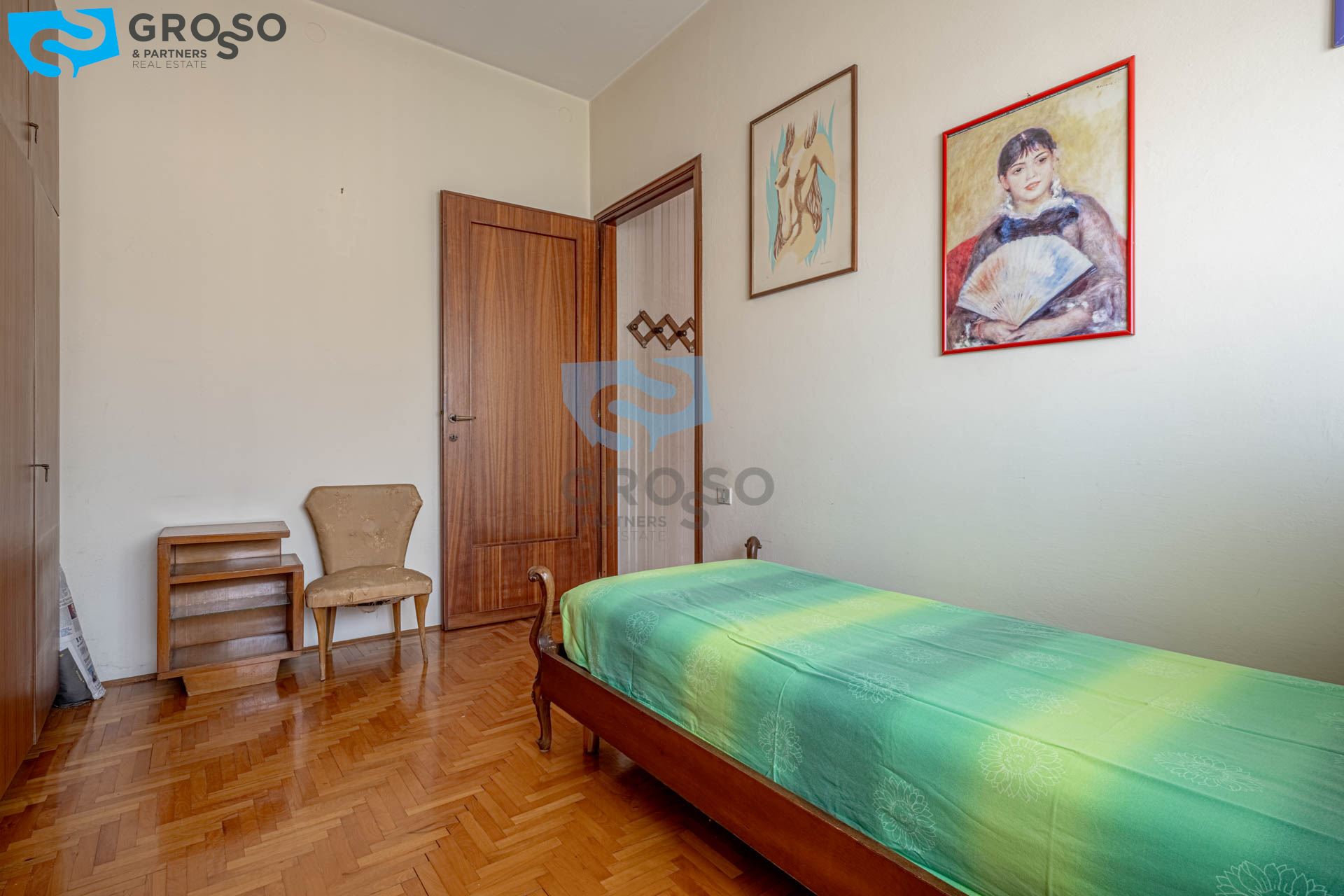 La zona notte si sviluppa con tre camere, di cui due matrimoniali e una singola, pensate per accogliere una famiglia numerosa o per essere reinterpretate in chiave investimento, creando spazi da destinare alla locazione a stanze. Il bagno completa l'abitazione, che si presenta abitabile ma pronta per una modernizzazione capace di valorizzarne appieno il potenziale.