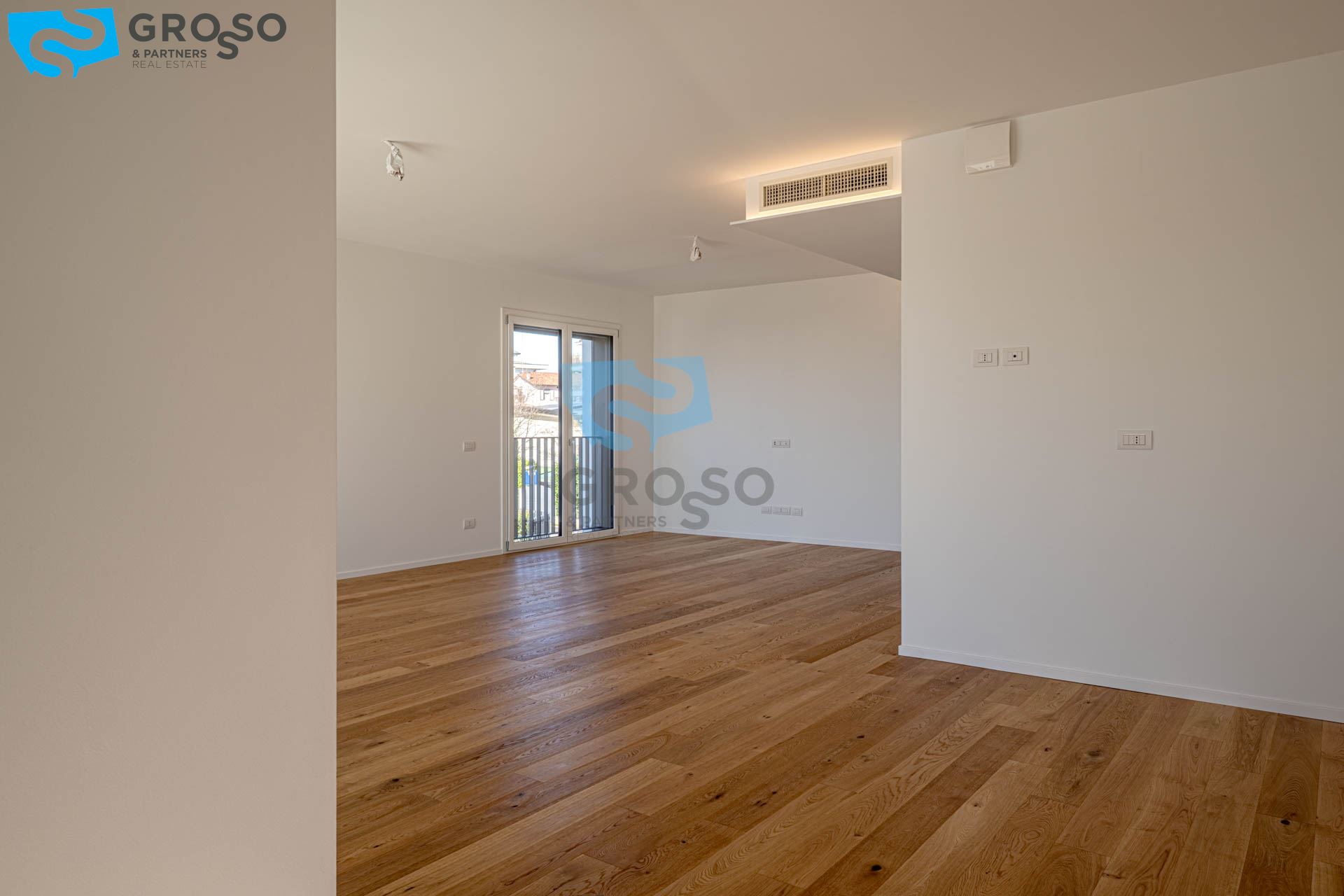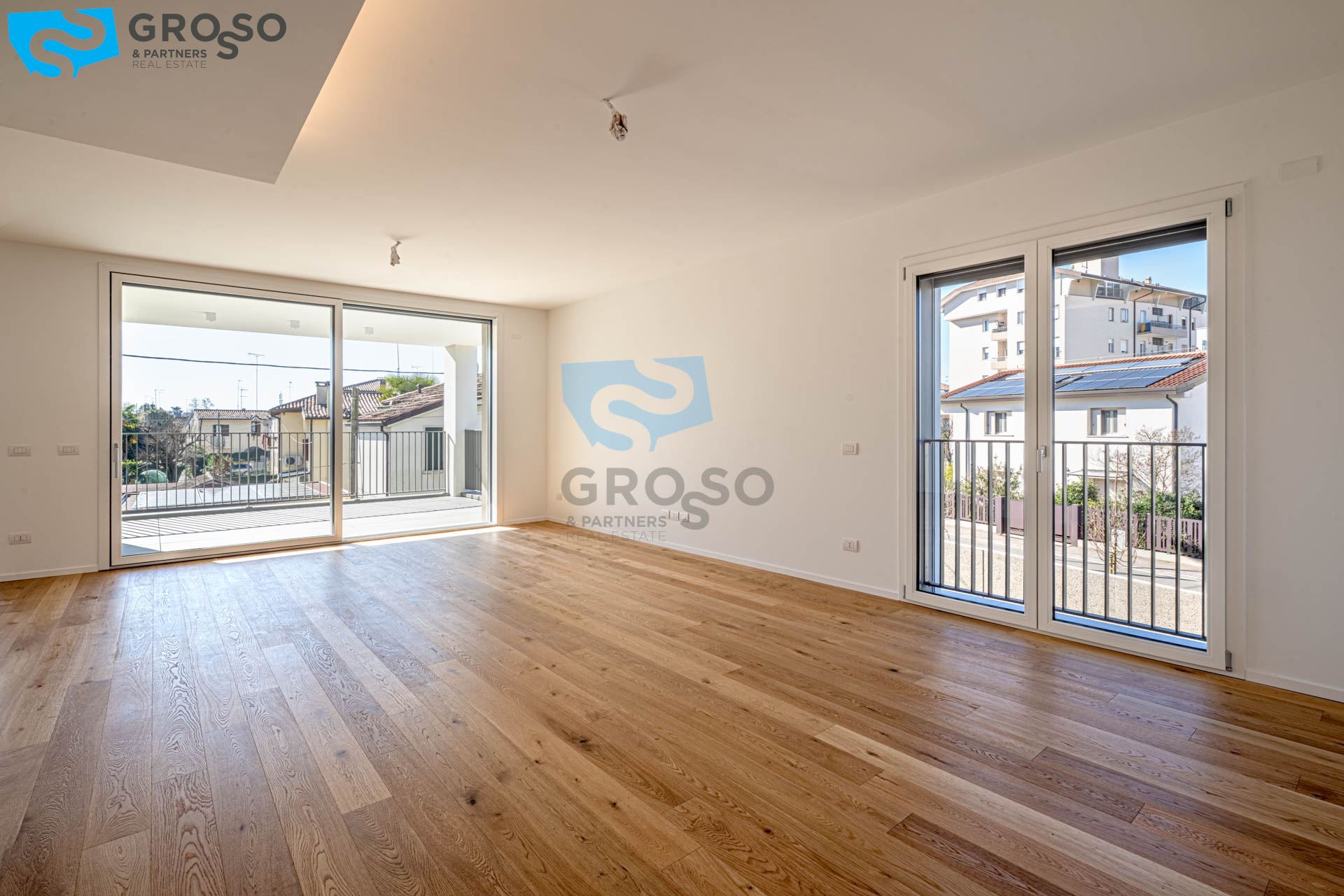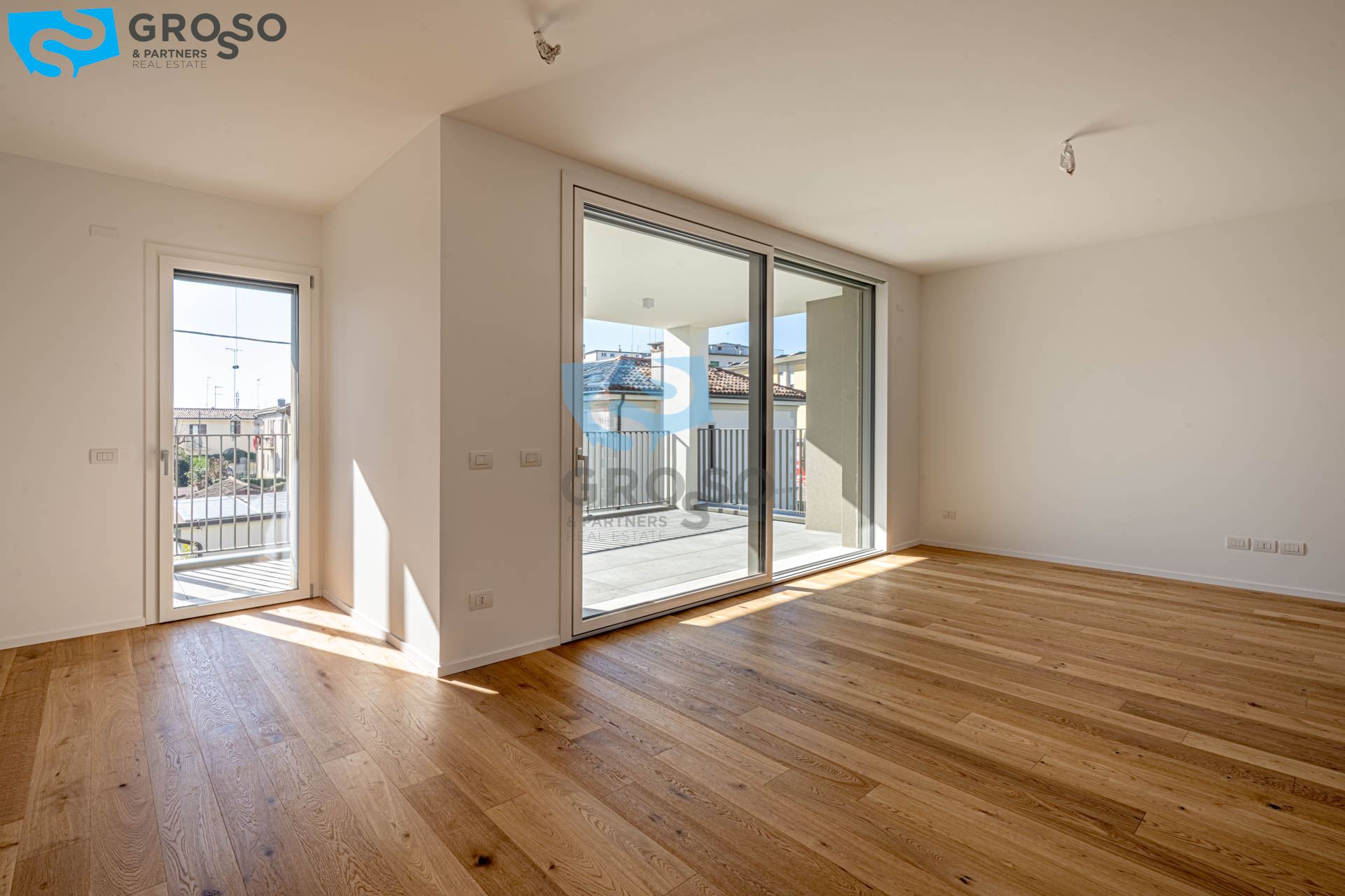 Treviso Santa Maria del Rovere, in elegante e recente contesto residenziale composto da sole quattro unità abitative realizzato nel 2025, proponiamo in vendita un raffinato appartamento situato al primo piano servito da ascensore, ideale per chi desidera vivere in un ambiente moderno, efficiente e riservato. L'abitazione si apre su un ingresso accogliente che conduce alla luminosa zona giorno caratterizzata da soggiorno con area pranzo e cucina a vista, uno spazio armonioso e ben distribuito che gode di accesso diretto a una splendida terrazza di 17 mq perfetta per momenti di relax all'aperto o convivialità. La zona notte è composta da tre camere da letto ben proporzionate, tra cui una matrimoniale, una doppia e una singola, completano la disposizione due bagni moderni e un pratico vano tecnico.