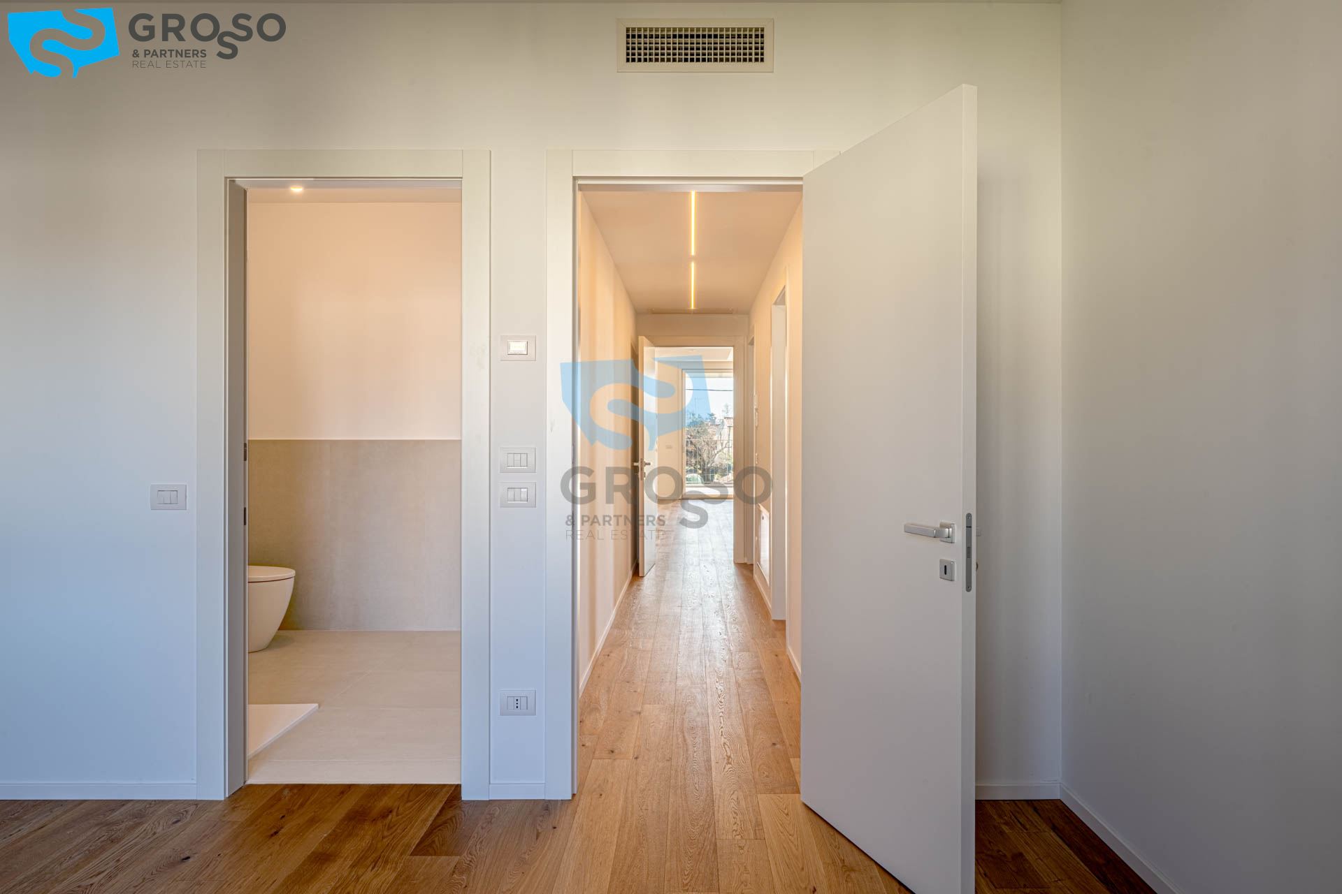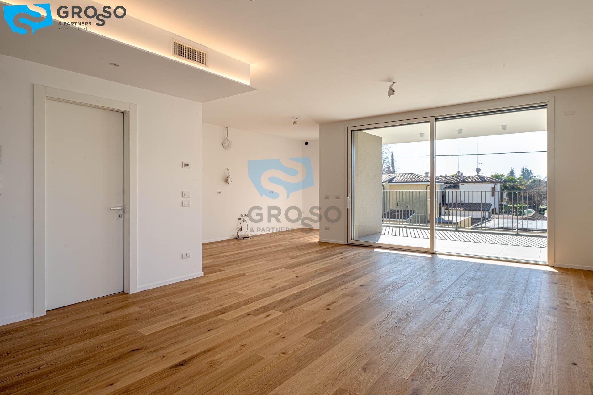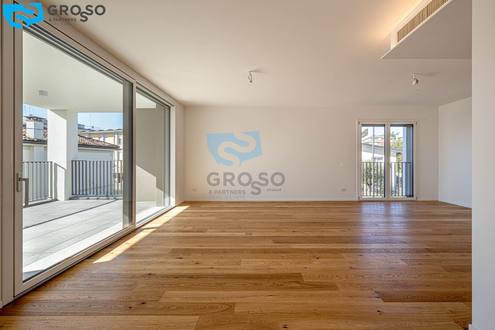 Treviso Santa Maria del Rovere, in elegante e recente contesto residenziale composto da sole quattro unità abitative realizzato nel 2025, proponiamo in vendita un raffinato appartamento situato al primo piano servito da ascensore, ideale per chi desidera vivere in un ambiente moderno, efficiente e riservato. L'abitazione si apre su un ingresso accogliente che conduce alla luminosa zona giorno caratterizzata da soggiorno con area pranzo e cucina a vista, uno spazio armonioso e ben distribuito che gode di accesso diretto a una splendida terrazza di 17 mq perfetta per momenti di relax all'aperto o convivialità. La zona notte è composta da tre camere da letto ben proporzionate, tra cui una matrimoniale, una doppia e una singola, completano la disposizione due bagni moderni e un pratico vano tecnico.