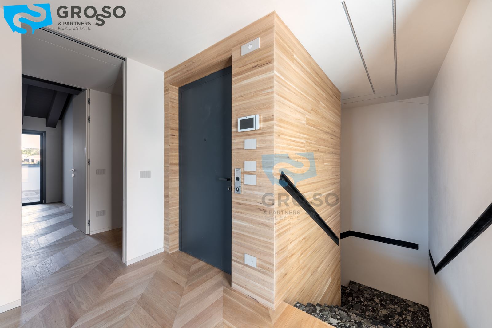 Tutti gli appartamenti dispongono di ampie terrazze abitabili e/o giardini privati, oltre a garage e posto auto. Il fabbricato è servito da ascensore.