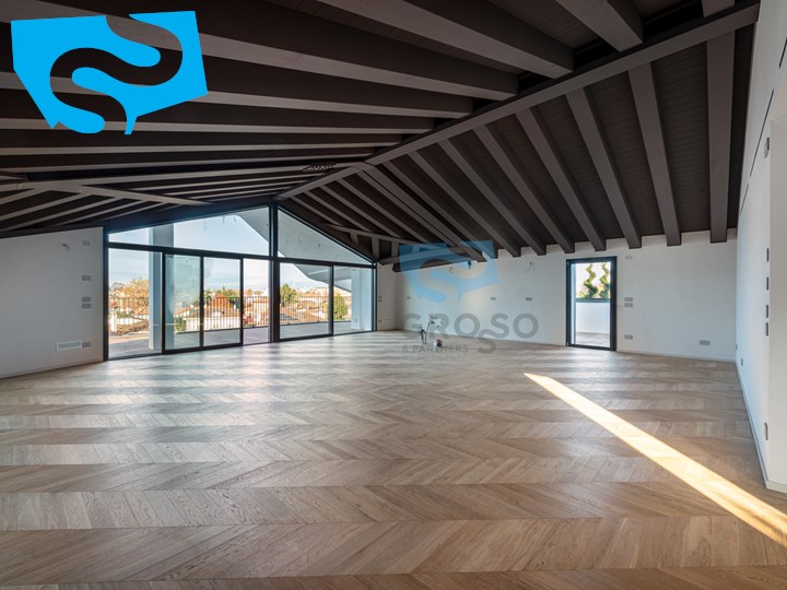 Un piccolo disimpegno che introduce alla zona notte composta da due camere da letto matrimoniali, ideali per una famiglia, completa la zona notte una comoda cabina armadio e un bagno finestrato dotato di una spaziosa doccia dal design moderno. Una scala a vista conduce al piano mansardato dove poter organizzare uno spazio per uno studio aggiuntivo e un ulteriore bagno.