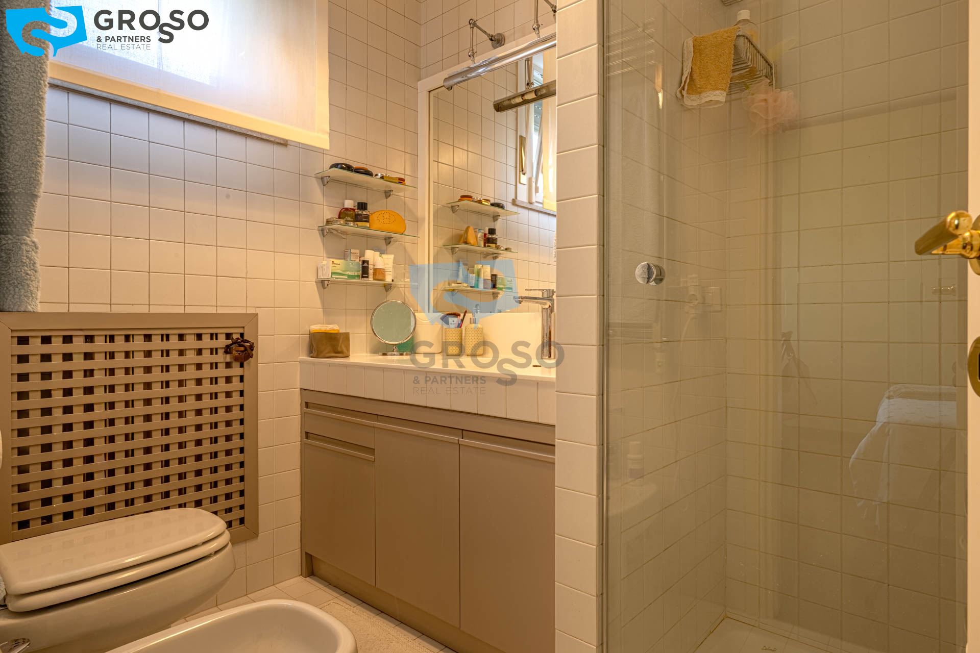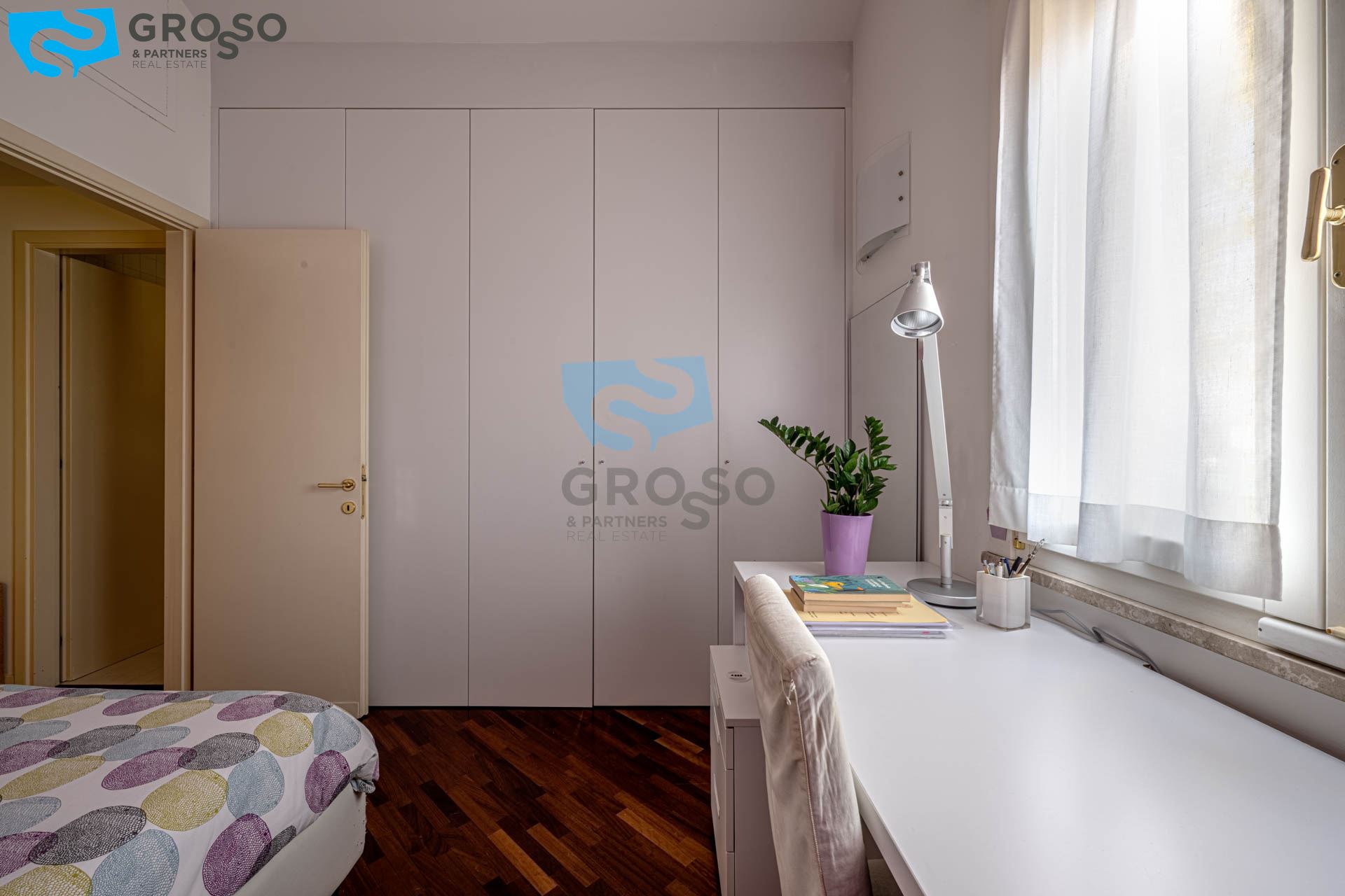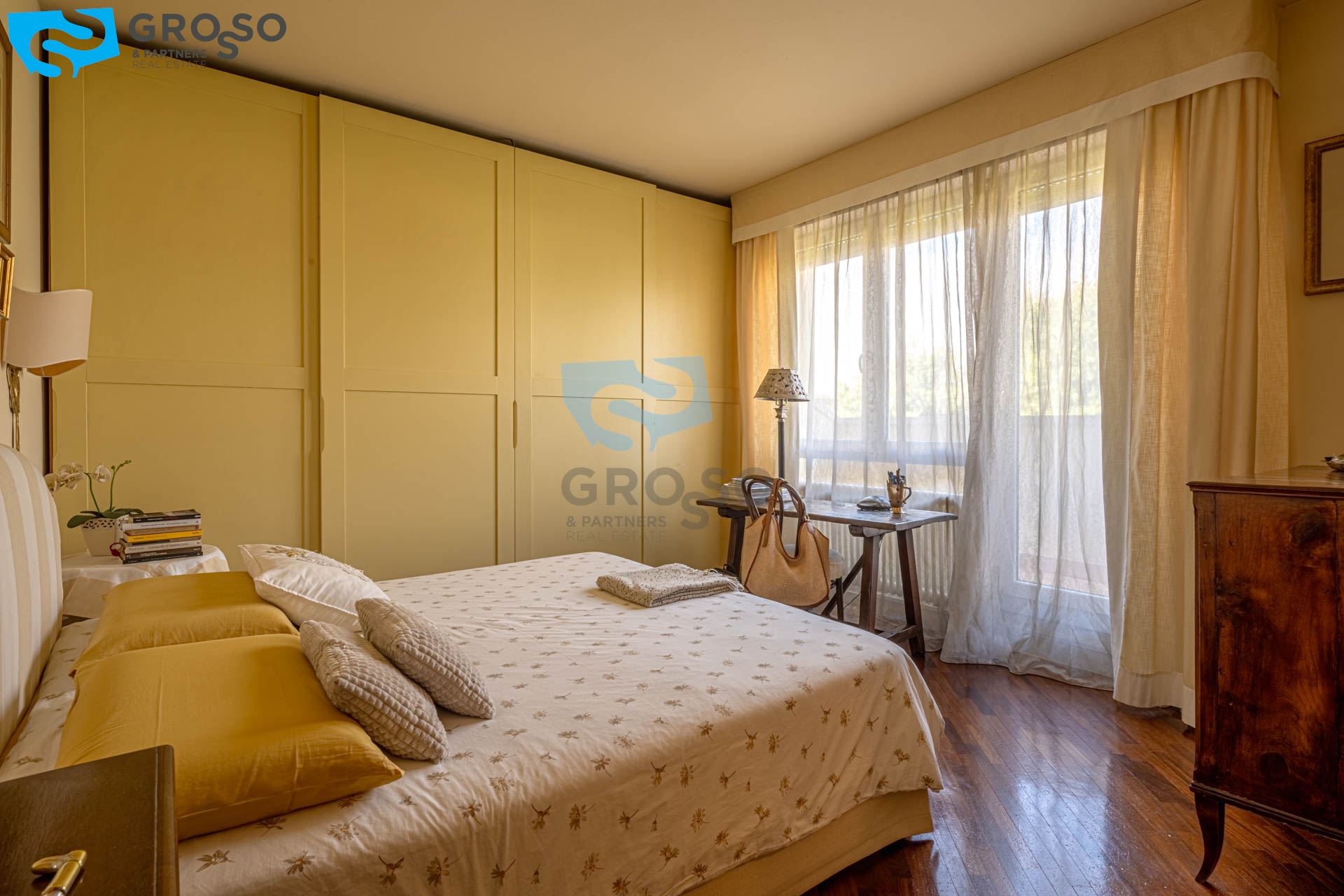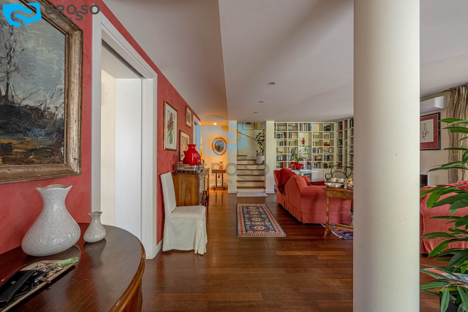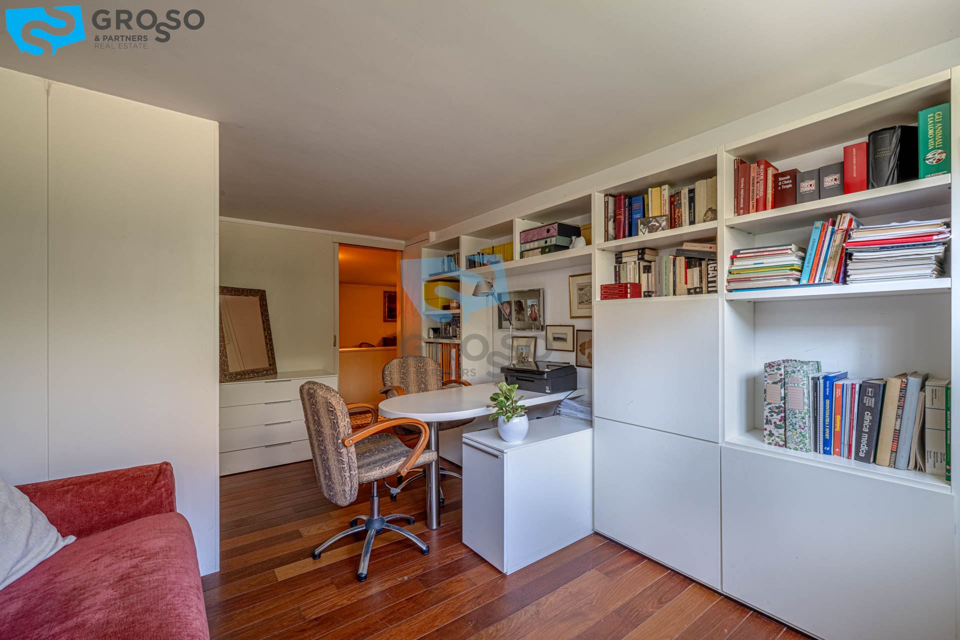 Strepitoso giardino piantumato, dal salotto si accede con un ampia vetrata scorrevole ad un plateatico coperto per le cene estive.