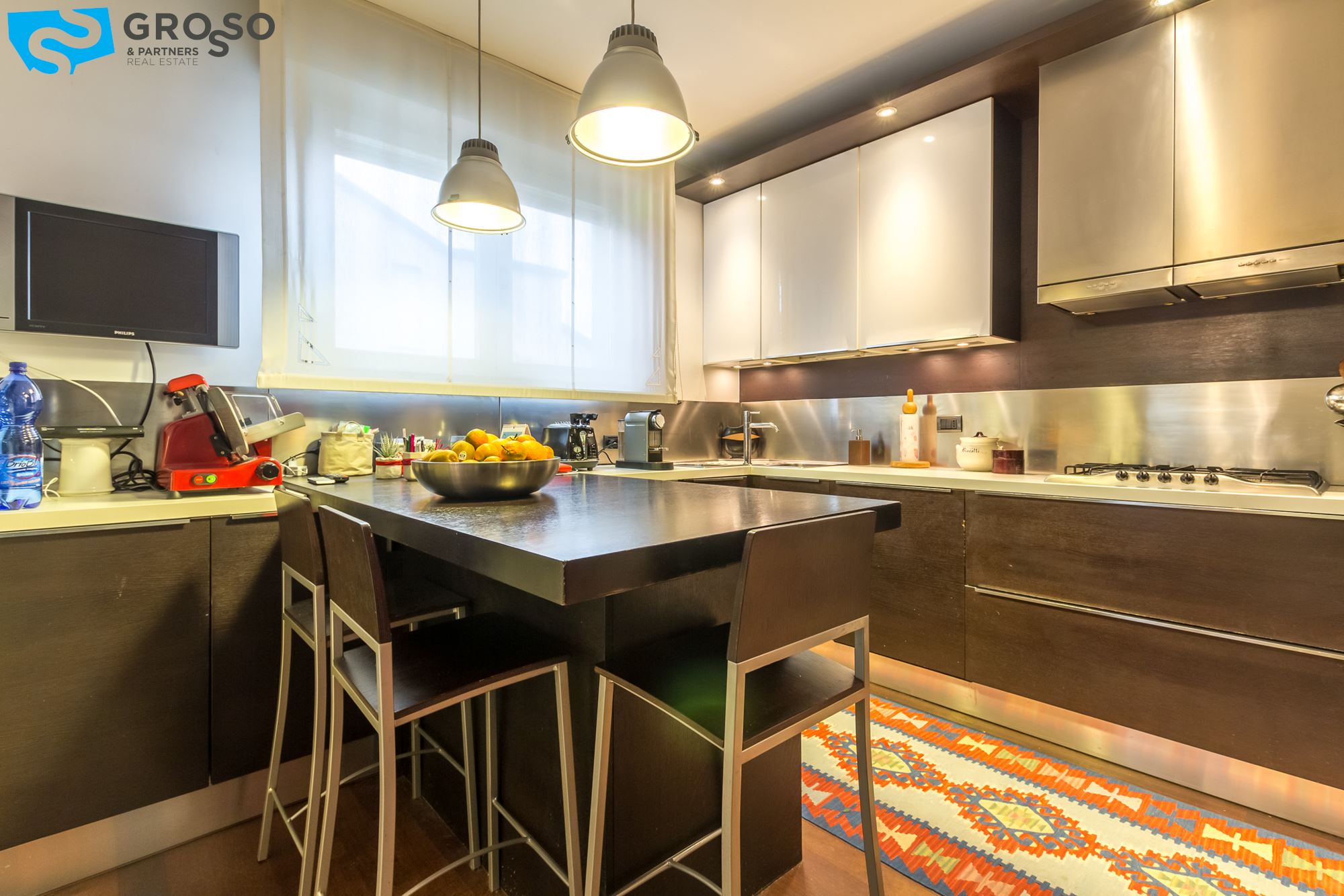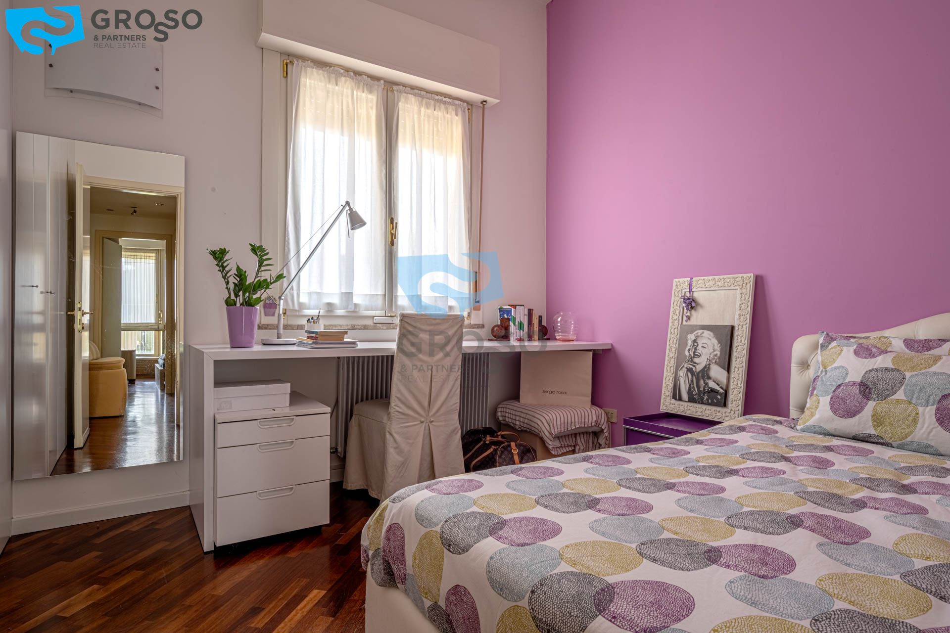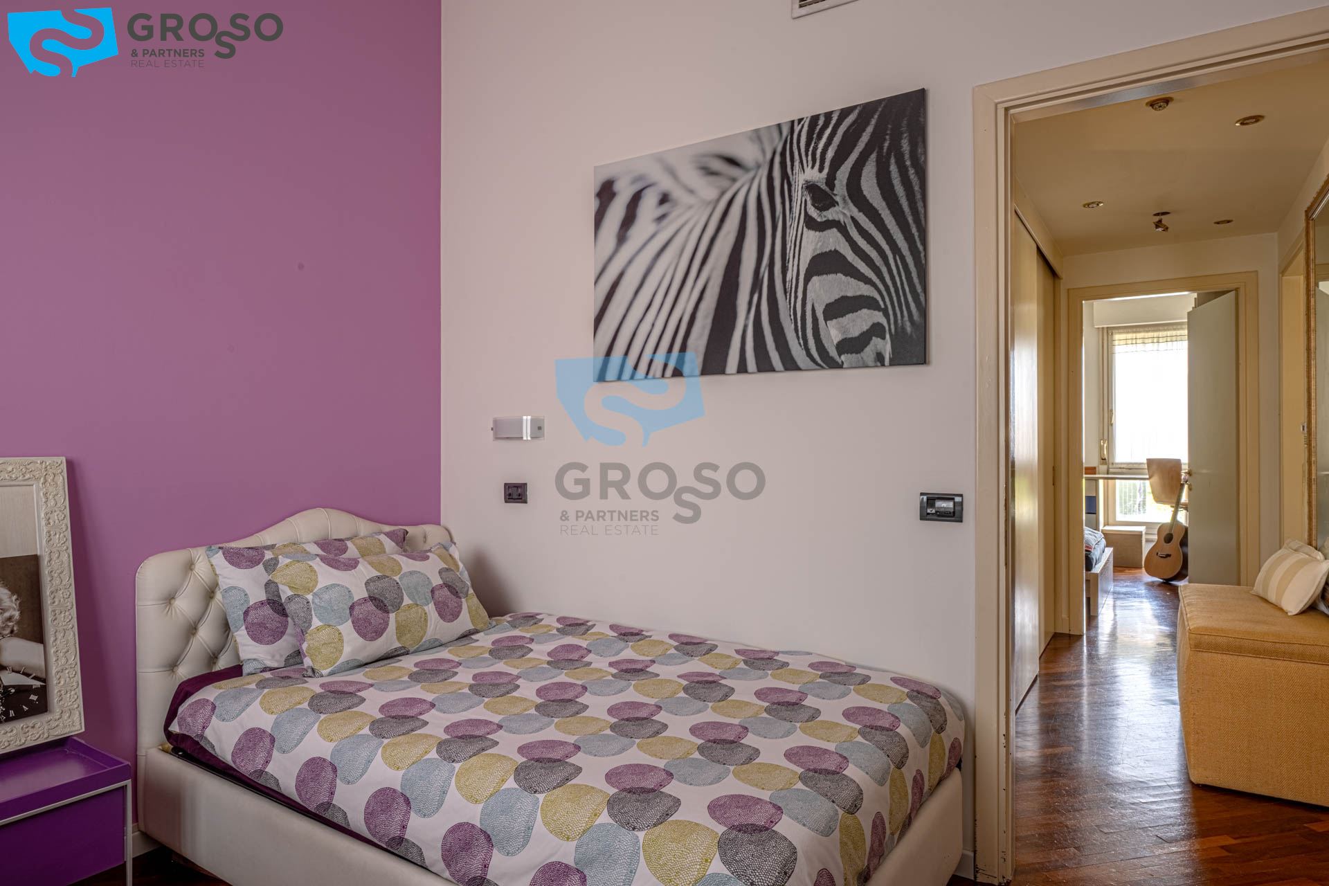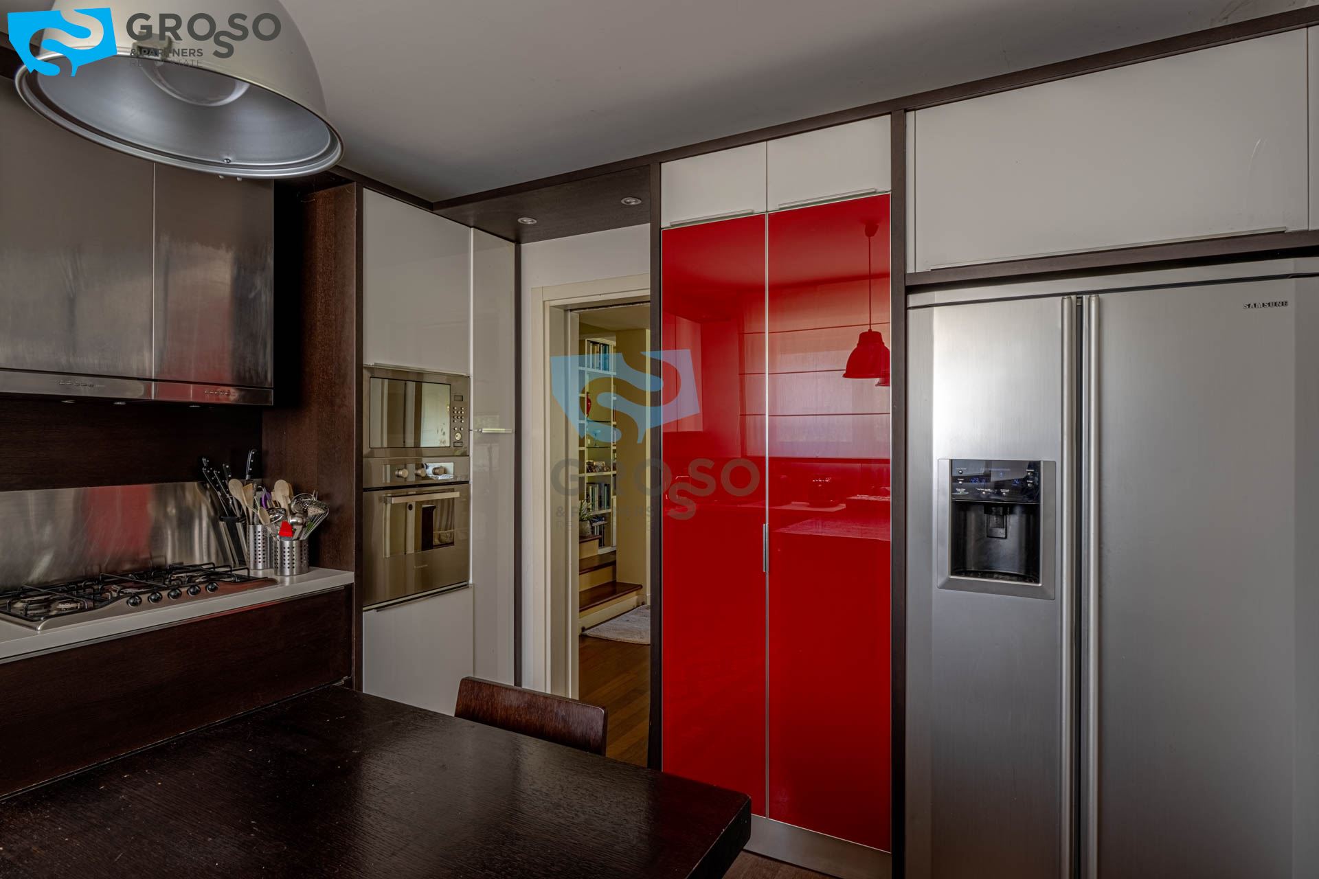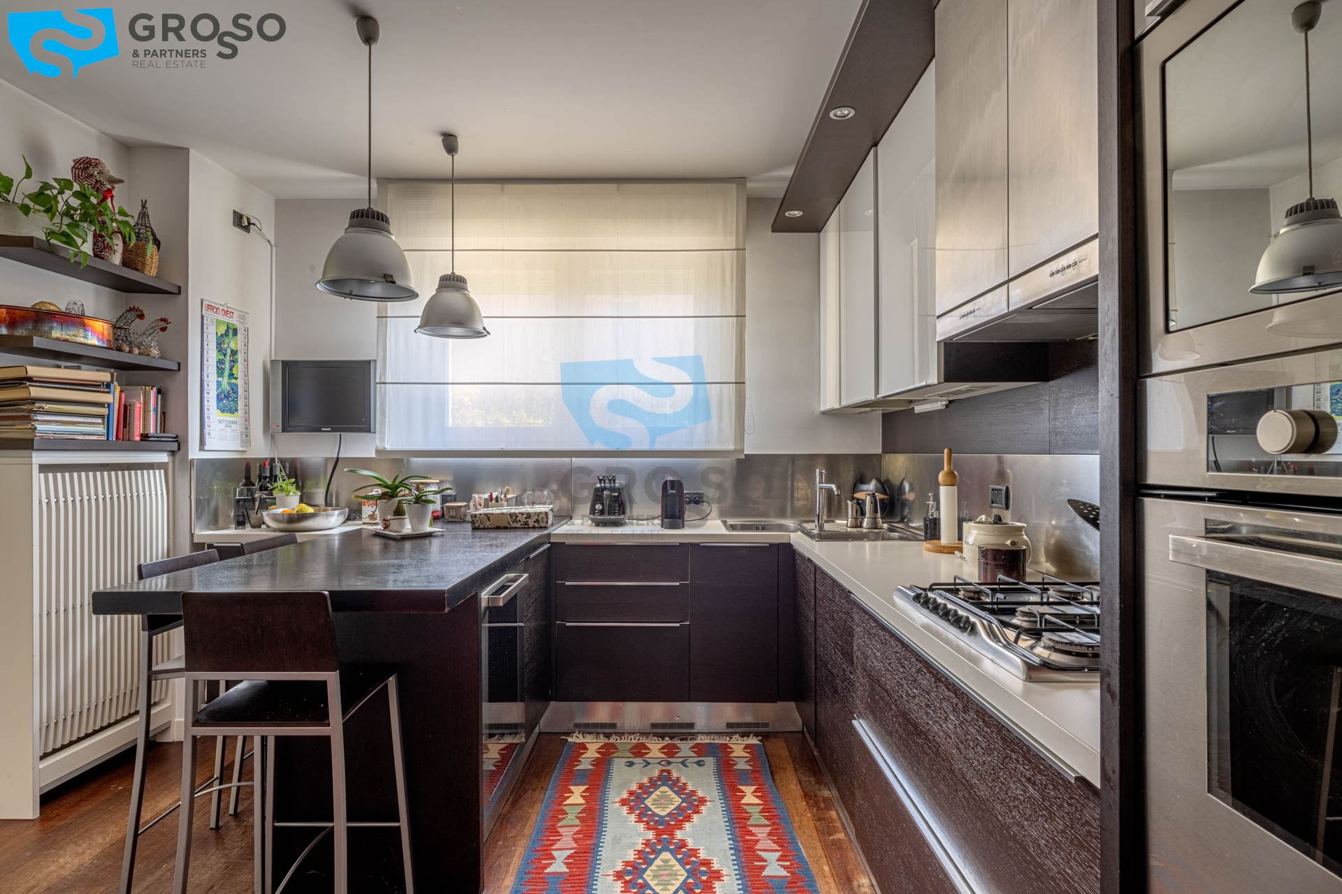 Strepitoso giardino piantumato, dal salotto si accede con un ampia vetrata scorrevole ad un plateatico coperto per le cene estive.