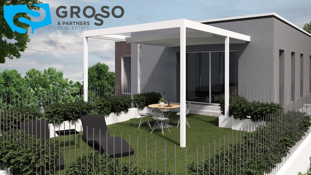 A Treviso, nella tranquilla località Fiera, proponiamo una elegante bivilla disposta su due livelli fuori terra. Al piano terra l’ingresso si apre su un ampio soggiorno con zona pranzo di 61 mq, collegato a una cucina separata di ulteriori 13 mq con accesso diretto al pergolato esterno di 21 mq, ideale per le cene estive. Completano il livello il bagno per gli ospiti, un pratico ripostiglio e la lavanderia che conduce direttamente al garage di 25 mq. Al primo piano si sviluppa la zona notte composta da quattro camere: una camera padronale con bagno privato e tre comode camere singole, servite da un ulteriore bagno. All’esterno sono presenti due posti auto e un ampio giardino privato di 390 mq. La consegna è prevista per l’inizio della primavera 2027.
