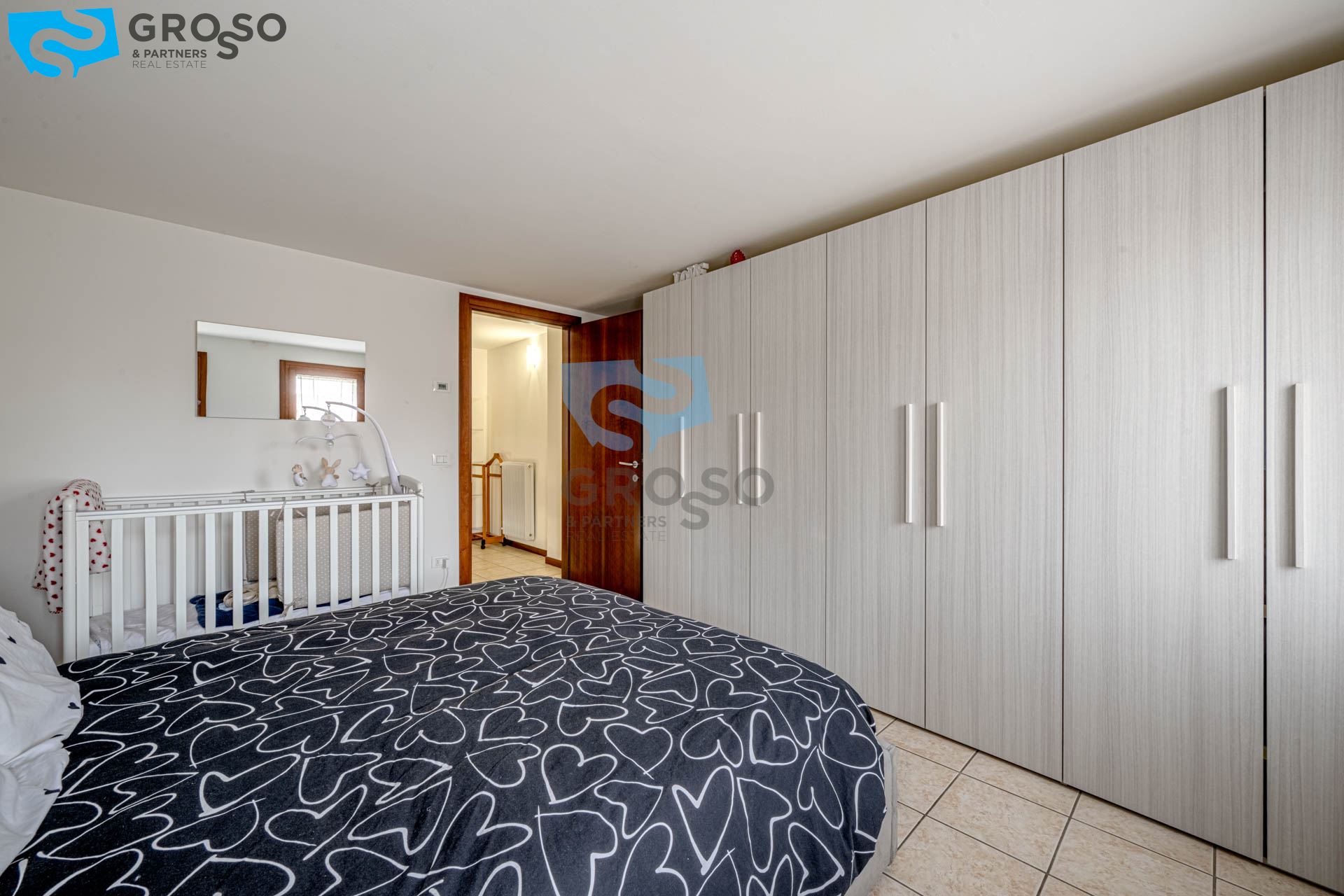 Salendo al primo piano si sviluppa la zona notte principale composta da una spaziosa camera matrimoniale, un bagno e una seconda stanza ideale come camera singola, studio o cabina armadio. Gli ambienti risultano armoniosi e ben distribuiti, pensati per garantire comfort e privacy.