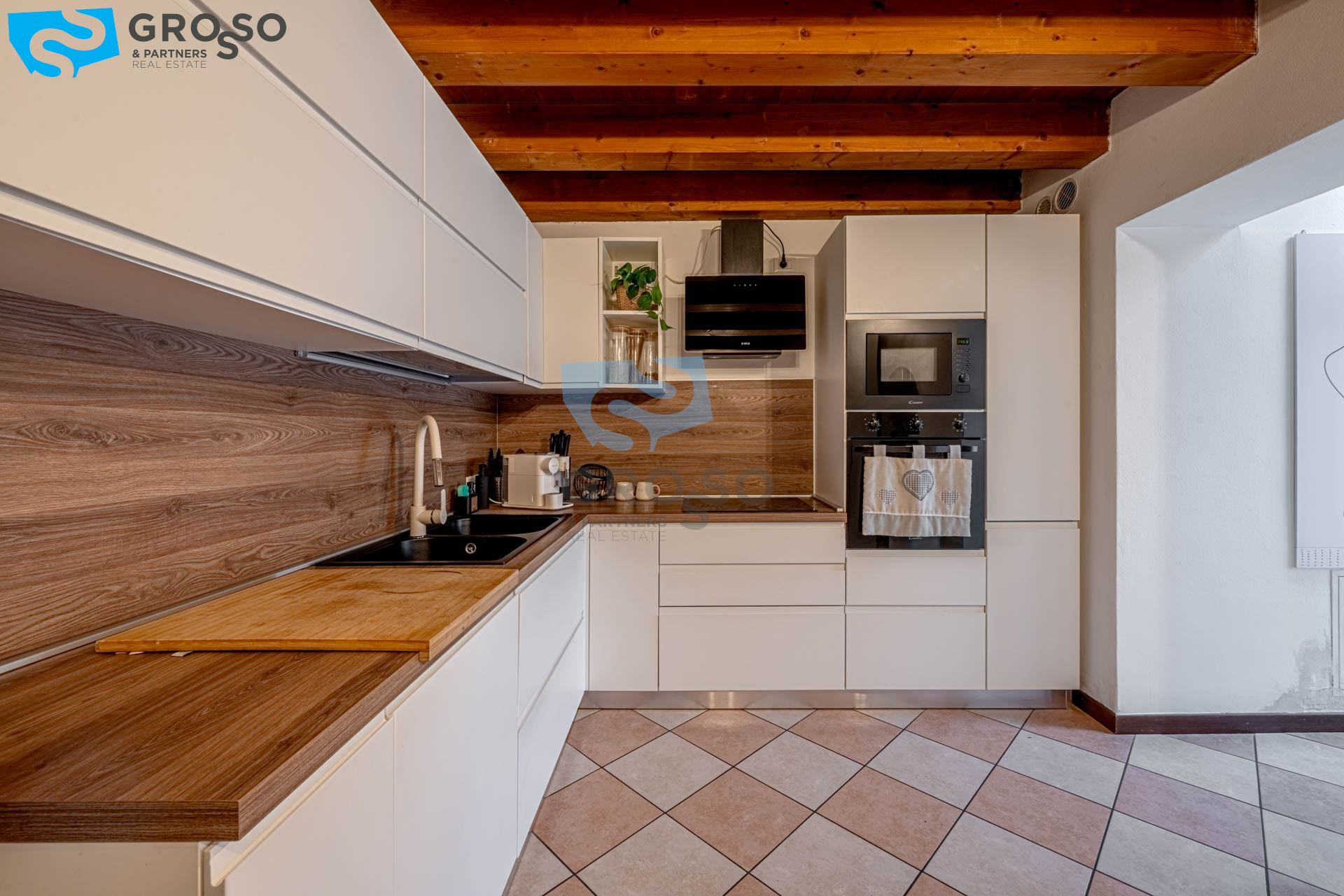 L'abitazione, di circa 130 mq, accoglie con una zona giorno calda e luminosa dove il soggiorno, ben definito e accogliente, dialoga con la cucina separata creando un equilibrio perfetto tra convivialità e funzionalità.