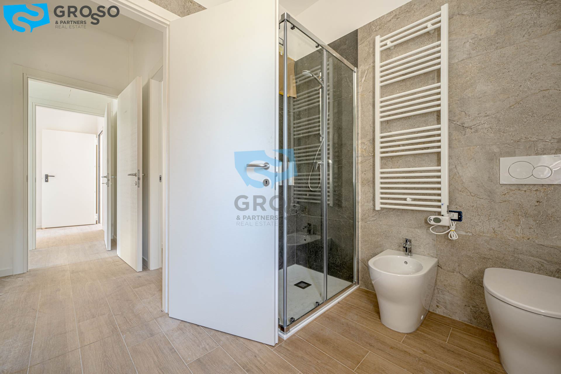 L'appartamento sarà consegnato completamente rinnovato con finiture di alta qualità e impianti di ultima generazione. La classe energetica A garantirà massima efficienza, grazie a cappotto termico, impianto fotovoltaico, pompa di calore e riscaldamento ad aria con raffrescamento tramite split. Serramenti in PVC con triplo vetro e tapparelle in alluminio elettriche assicureranno comfort e isolamento, mentre il portoncino blindato e il garage collegato internamente offriranno sicurezza e praticità.