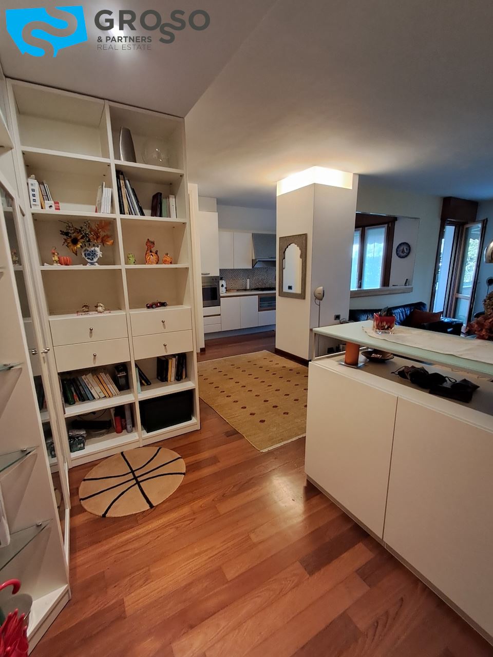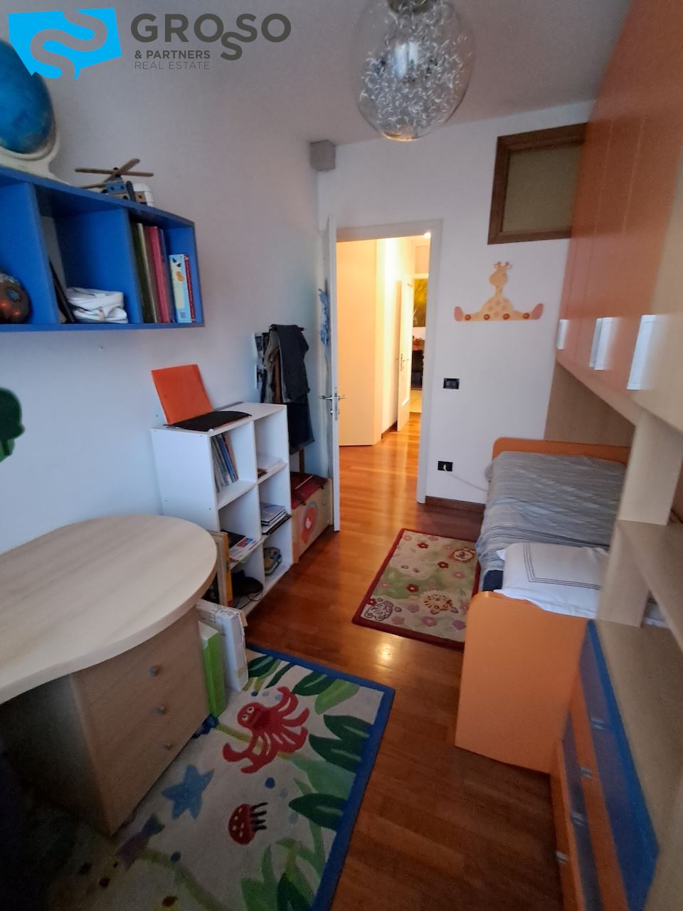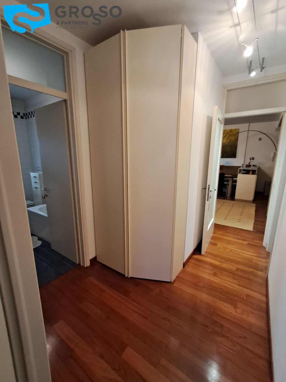 Proseguendo nella zona notte si trova un disimpegno ben organizzato, dotato di ripostiglio utile per ottimizzare gli spazi. Da qui si accede a due bagni, di cui uno finestrato, e a due camere da letto, tra cui una spaziosa matrimoniale. L'appartamento offre quindi una soluzione abitativa adatta sia a famiglie che a chi cerca comfort e funzionalità in un contesto riservato.