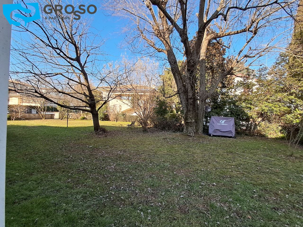 Completano la proprietà un garage doppio situato al piano interrato e un magazzino, elementi che aggiungono valore e praticità all'immobile. Il contesto condominiale è arricchito da un ampio giardino comune, ben curato, che rappresenta uno spazio verde fruibile e piacevole per tutti i residenti.