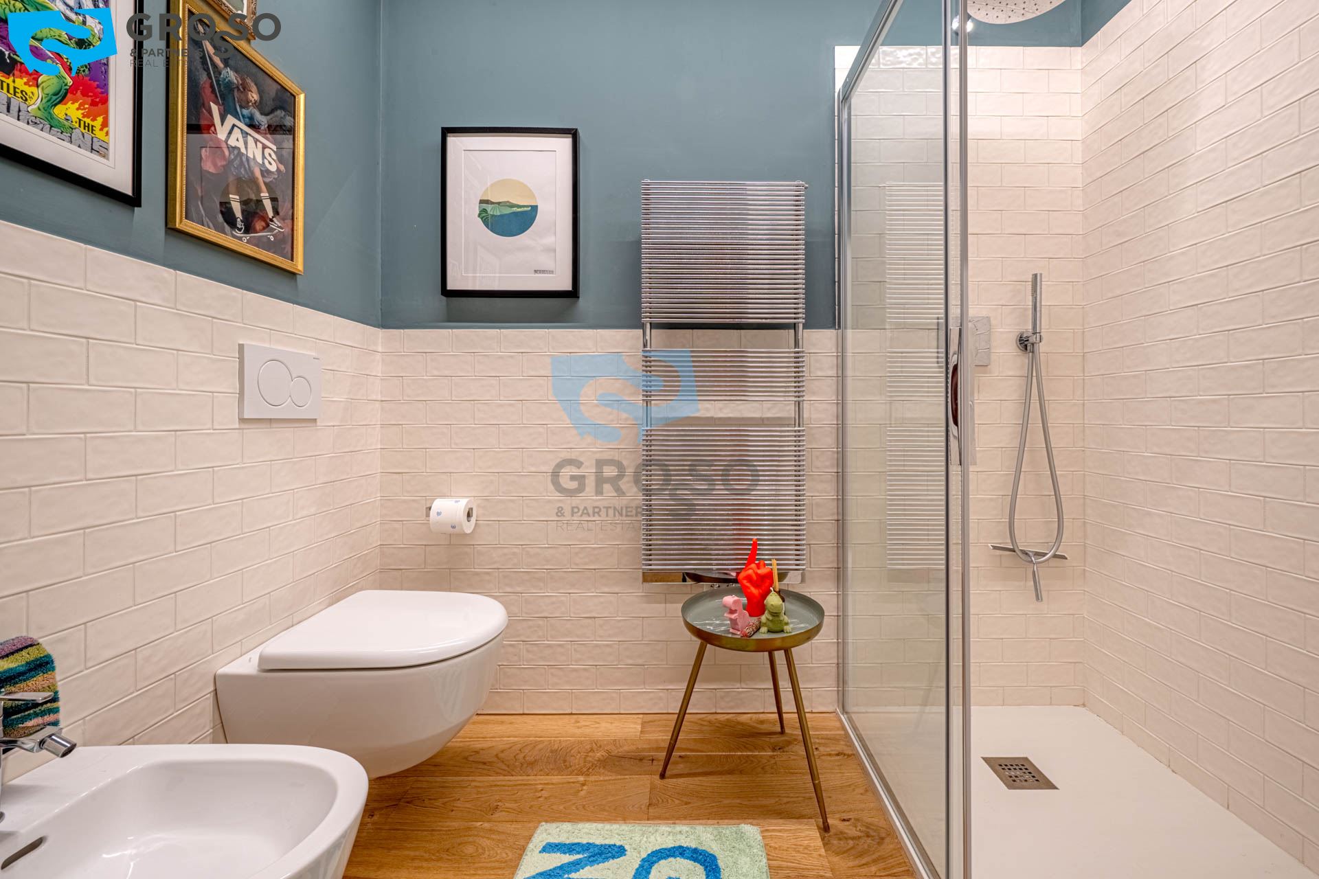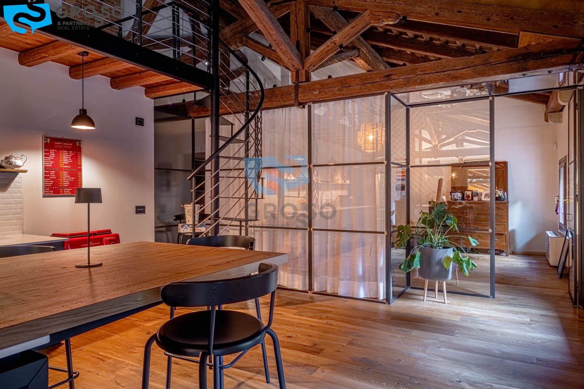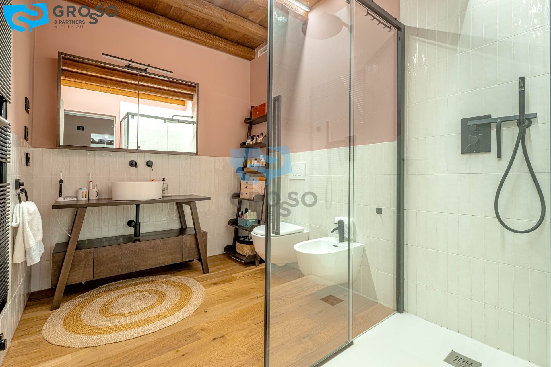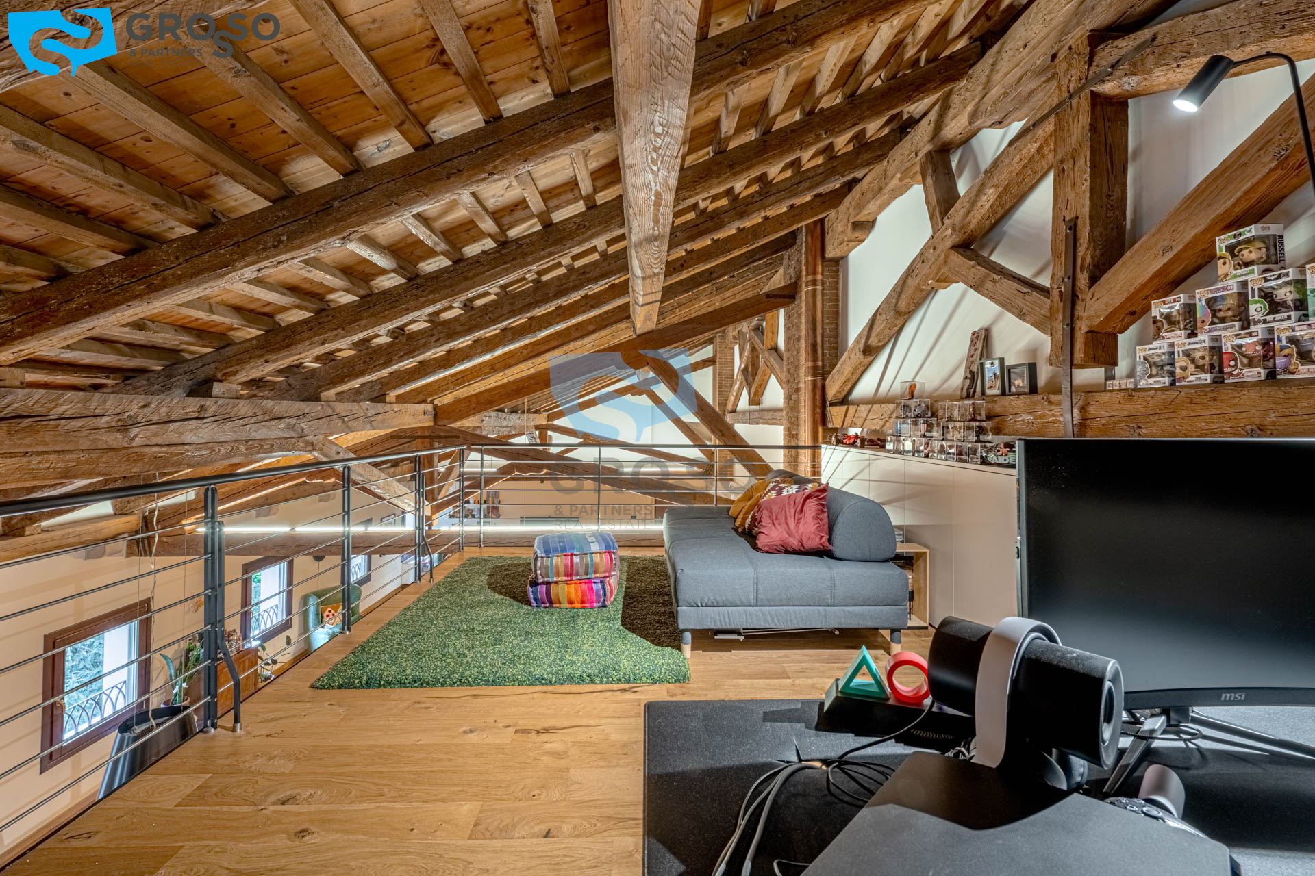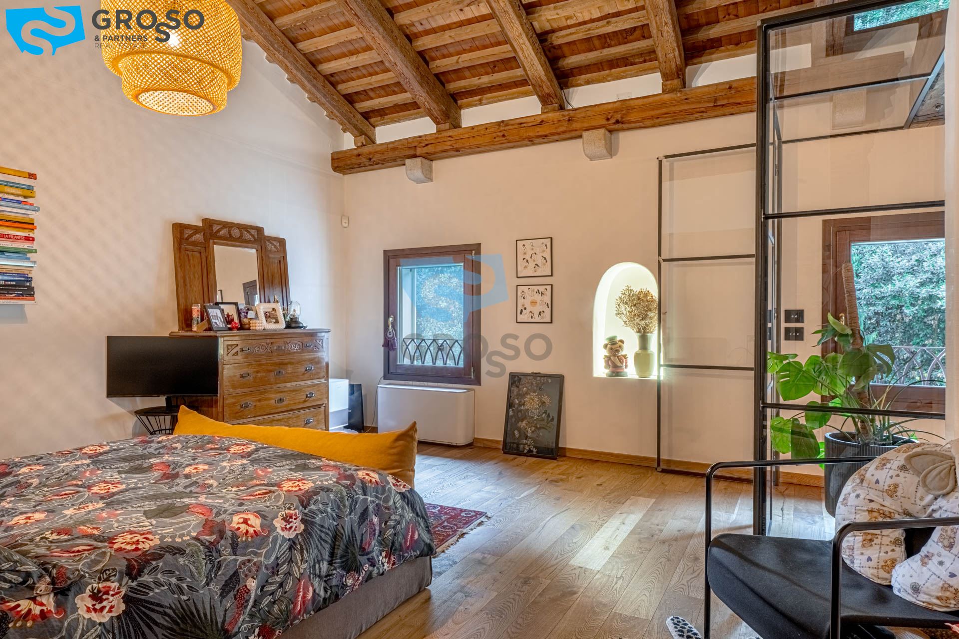 L'appartamento si sviluppa su una superficie calpestabile di 165 mq calpestabili, al primo piano della bellissima barchessa del '700. L'ingresso è sulla scenografica zona giorno open space con salotto e cucina a vista, bagno completo. Una parete vetrata divide la zona living dalla camera matrimoniale con cabina armadio e secondo bagno. Completa l'immobile il soppalco mansardato che può essere adibito a seconda cameretta o studio. Al piano terra troviamo un magazzino e due comodi posti auto scoperti. Riscaldamento autonomo a pavimento e aria condizionata.