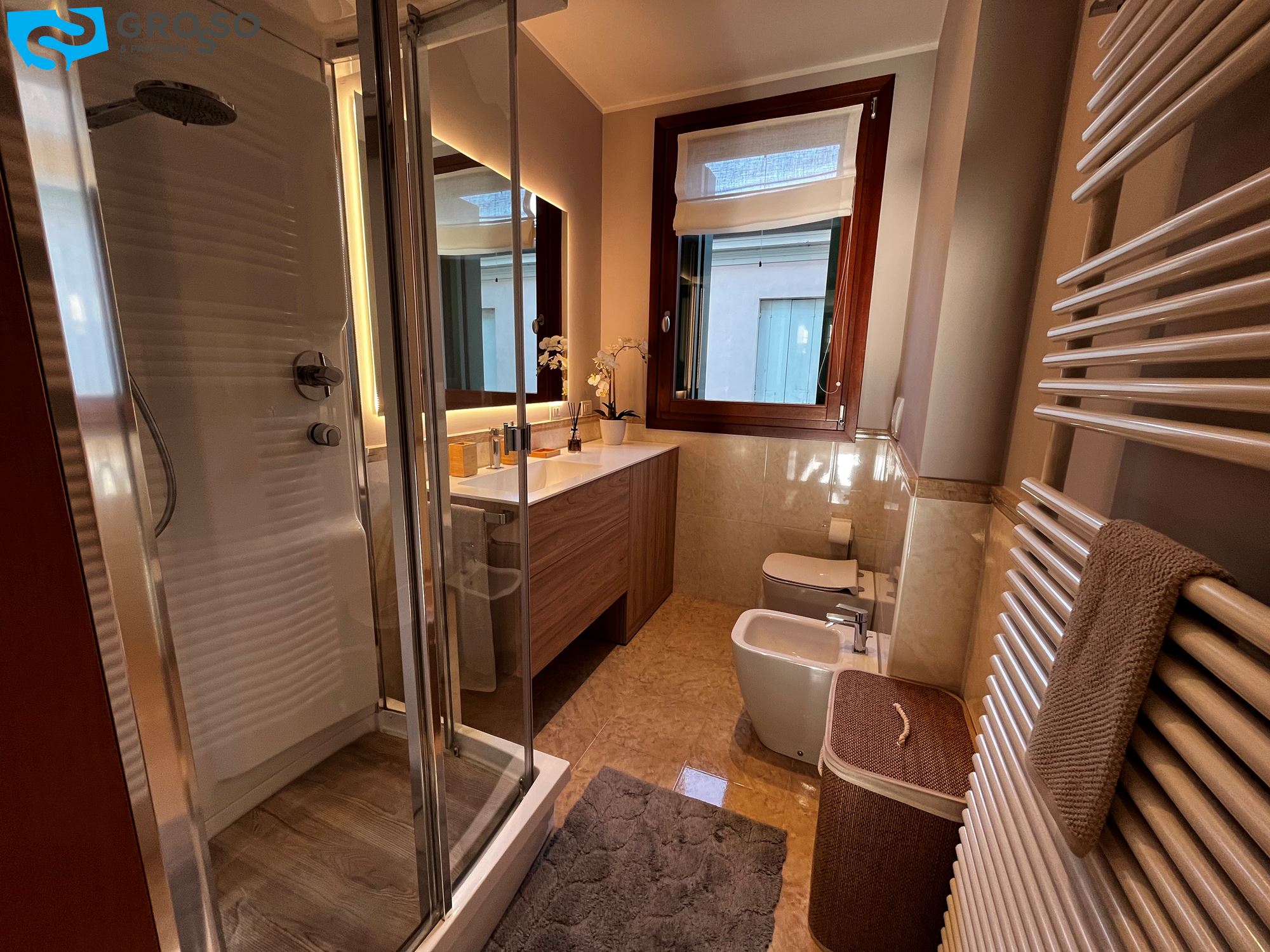 Il riscaldamento è autonomo a radiatori, sono presenti inoltre l'aria condizionata e le zanzariere.