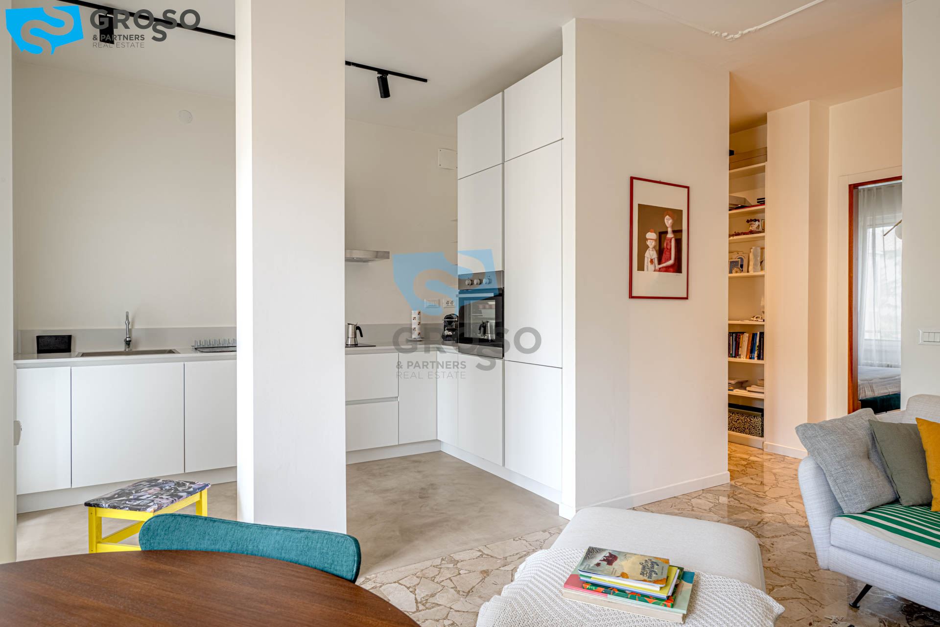 L'immobile viene venduto parzialmente arredato con cucina completa di elettrodomestici, arredo bagno e una raffinata libreria su misura collocata all'ingresso. L'ottima posizione consente di raggiungere facilmente il centro storico e tutti i principali servizi a piedi rendendolo ideale sia come abitazione principale che come investimento.