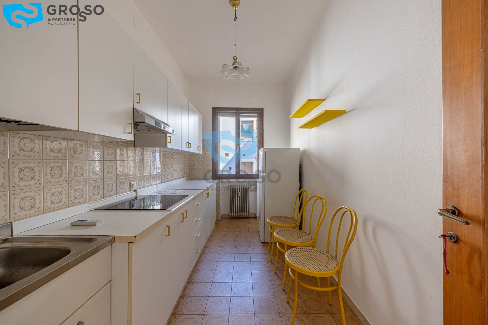 L'appartamento si sviluppa con una distribuzione funzionale degli spazi e accoglie un soggiorno luminoso con cucina separata, una camera matrimoniale dalle dimensioni generose, un bagno finestrato e un terrazzino di servizio.