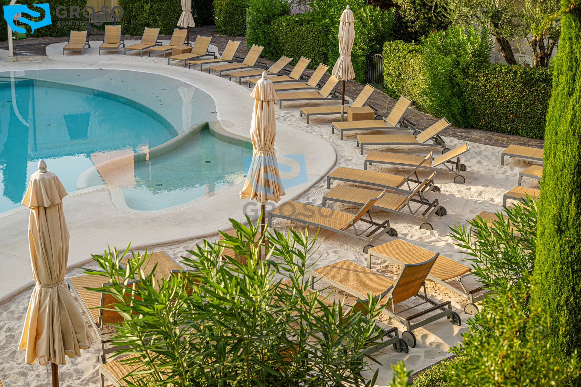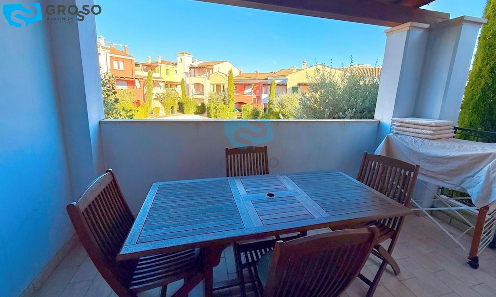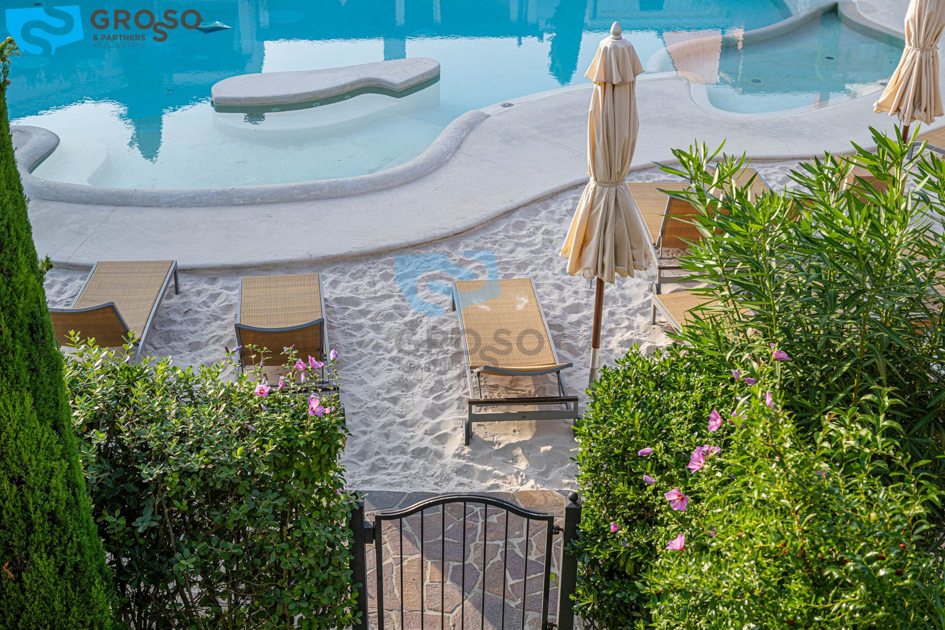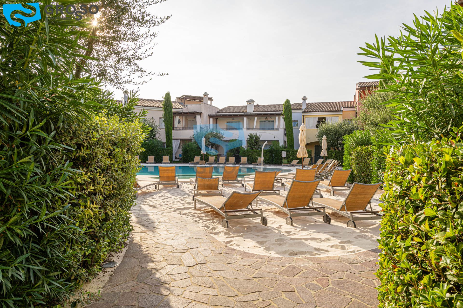 L' immobile è composto da un ampio soggiorno con angolo cottura, perfettamente integrato nella zona living e con accesso diretto alla terrazza coperta, spazio ideale per pranzi e cene all'aperto con affaccio sulla splendida piscina condominiale. La zona notte comprende una camera matrimoniale, una cameretta e un bagno finestrato dotato di tutti i comfort.