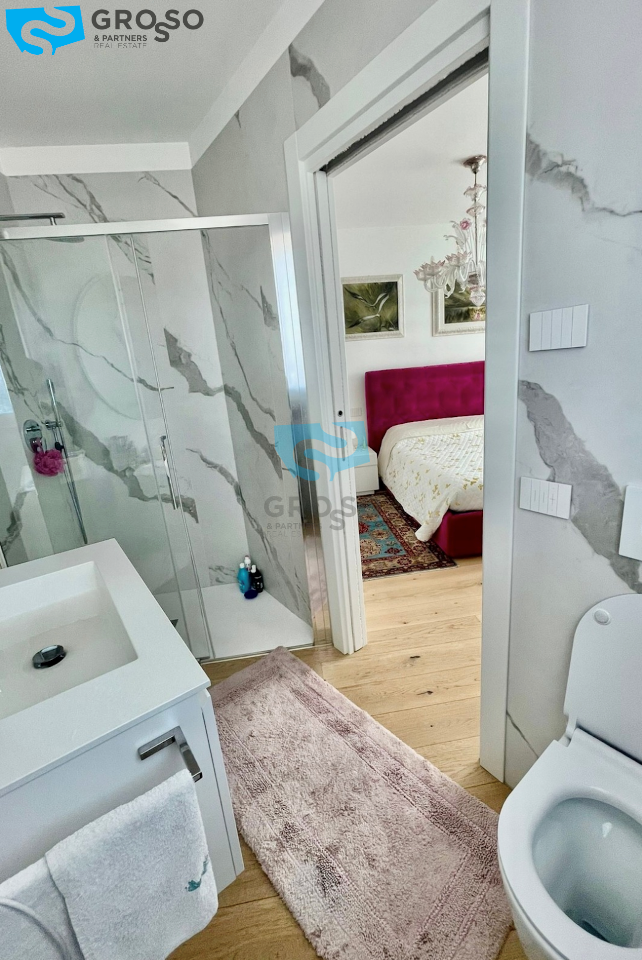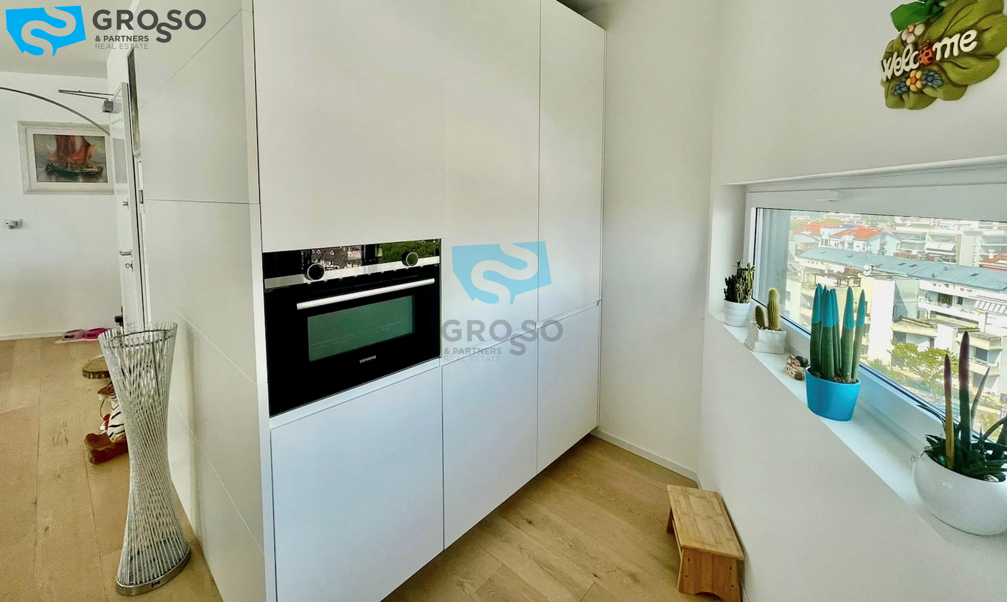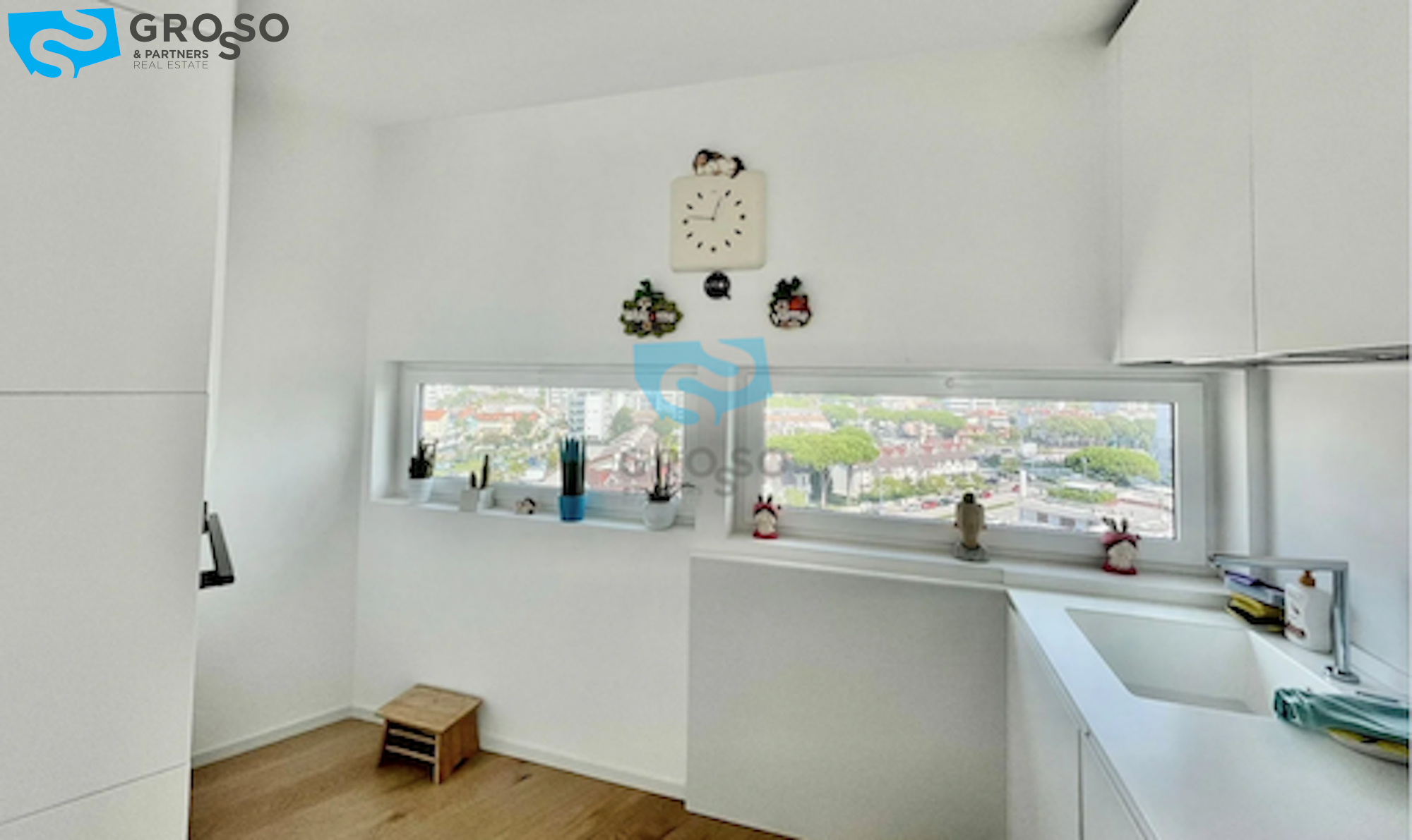 Al settimo piano del prestigioso complesso UP TOWN, a soli 300 m dalla spiaggia e a pochi passi da Piazza Drago, proponiamo moderno appartamento in palazzina di sole nove unità. L' edificio, sviluppato su dieci piani, rappresenta un nuovo riferimento nel cuore di Lido di Jesolo grazie al design contemporaneo e ai grandi terrazzi, vero tratto distintivo delle residenze. L' appartamento offre un luminoso soggiorno con angolo cottura e ampie vetrate che si affacciano sul terrazzo abitabile. La zona notte comprende due camere matrimoniali, di cui una con bagno privato dotato di box doccia, oltre a un secondo bagno finestrato, anch'esso con box doccia. Sono presenti inoltre due terrazze, entrambe ideali per ammirare una meravigliosa vista panoramica su Jesolo. Completano la proprietà un comodo posto auto coperto da pompeiana, riscaldamento autonomo a pavimento e raffrescamento canalizzato. Una soluzione esclusiva, moderna e confortevole, ideale per vivere Jesolo tutto l'anno o come elegante casa vacanze.