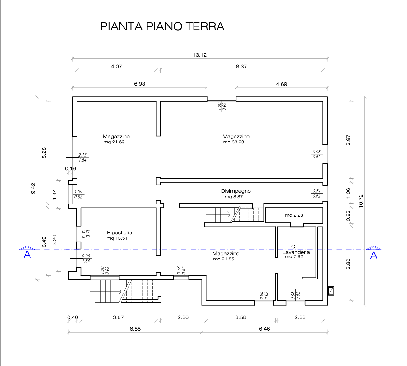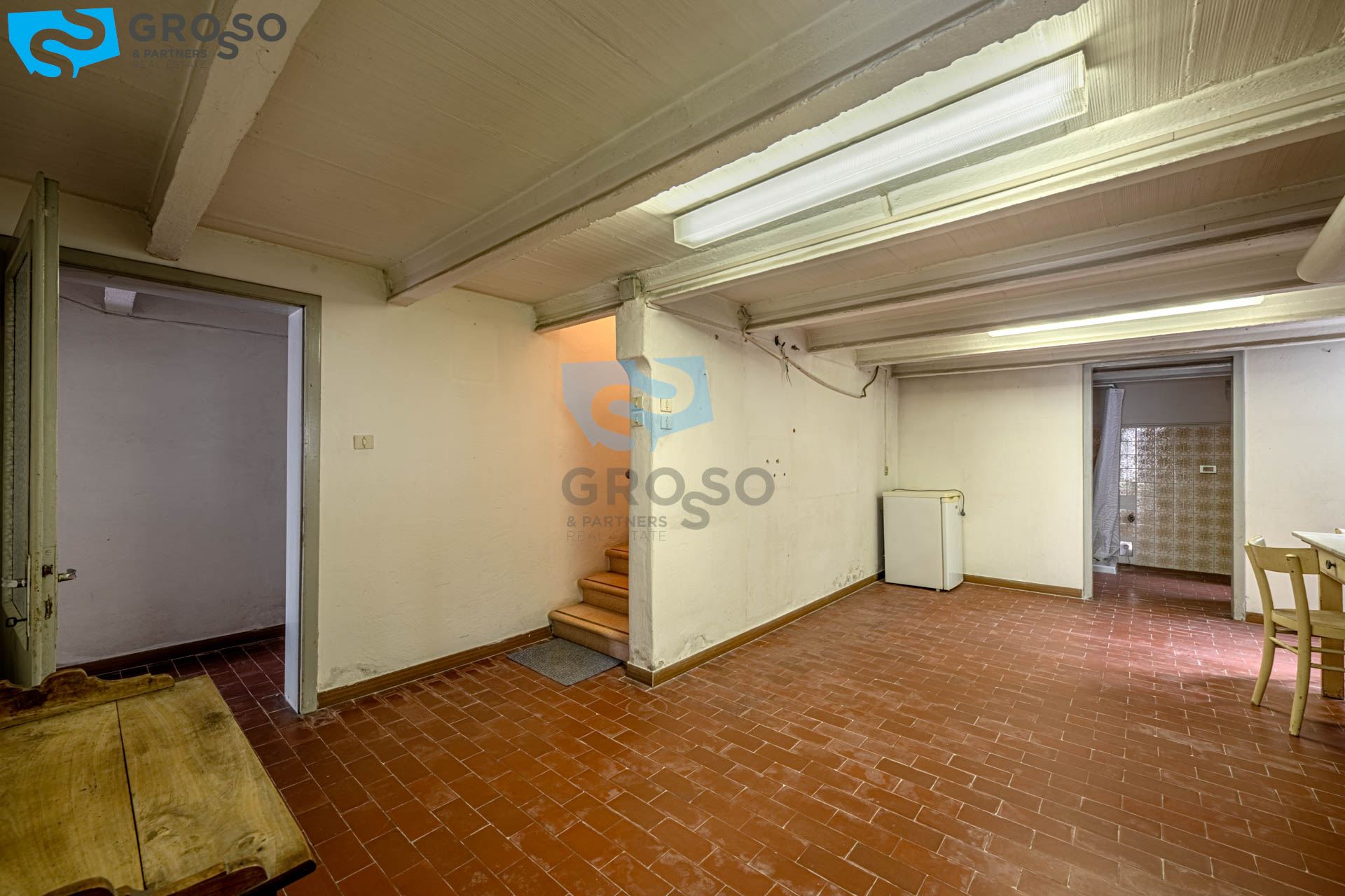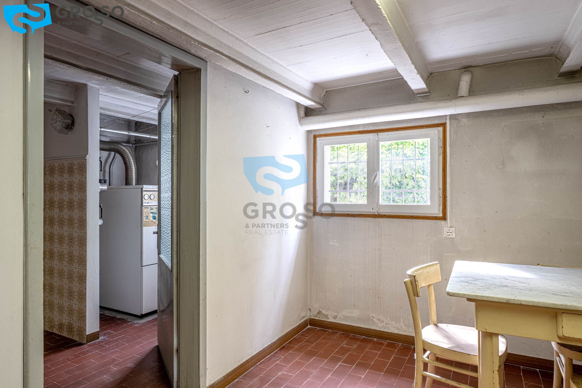 Al piano terra si trovano vari locali di servizio, tra cui magazzini, ripostigli, lavanderia, cantina e un ampio garage.