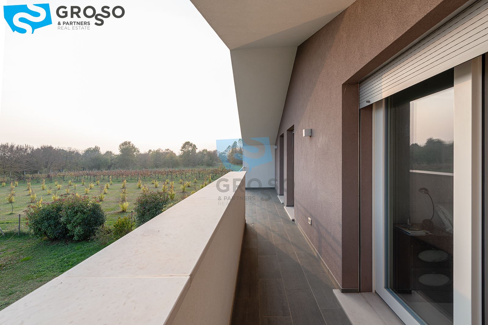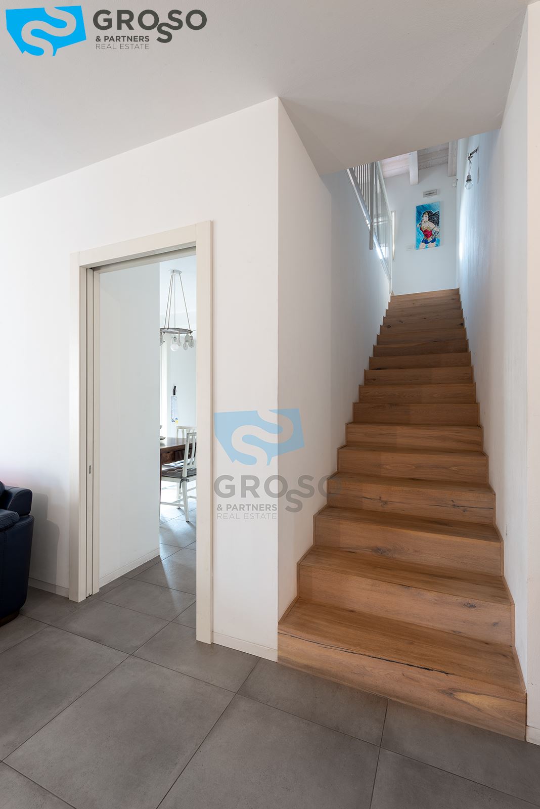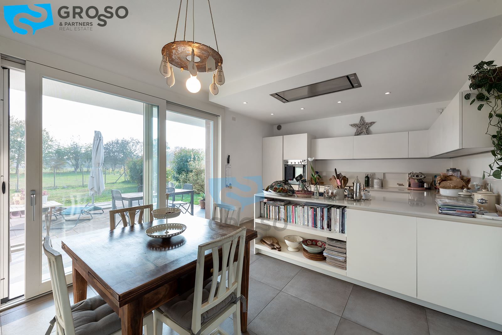 A Ponzano Veneto, in una tranquilla zona residenziale immersa nel verde, proponiamo in vendita una casa indipendente edificata nel 2016, caratterizzata da spazi moderni, ottime finiture e un ampio scoperto privato di 813 mq. L'abitazione si sviluppa su due livelli fuori terra e offre ambienti luminosi e ben distribuiti, ideali per chi desidera comfort, privacy e qualità costruttiva. Al piano terra l'ingresso conduce a un accogliente soggiorno con zona pranzo, collegato alla cucina abitabile separata dalla quale si accede al portico esterno, perfetto per pranzi e cene all'aperto durante la bella stagione. Sullo stesso livello si trovano un bagno per gli ospiti con doccia, la centrale termica e il garage comunicante, oltre a due posti auto esterni che completano la praticità degli spazi. La zona notte, situata al piano primo, comprende una camera matrimoniale e tre camere singole, tutte servite da una loggia che si sviluppa lungo l'intero perimetro, regalando continuità tra ambienti interni ed esterni e piacevoli affacci sul giardino. Il piano è completato da un bagno con doccia e da un comodo magazzino utilizzabile anche come stanza armadio. L'immobile è dotato di riscaldamento autonomo a pavimento, aria condizionata e impianto fotovoltaico da 2,9 kW, garanzie di efficienza energetica e contenimento dei consumi. Una soluzione recente, indipendente e subito abitabile, ideale per chi cerca una casa moderna circondata da un ampio spazio esterno in un contesto residenziale riservato e ben servito.