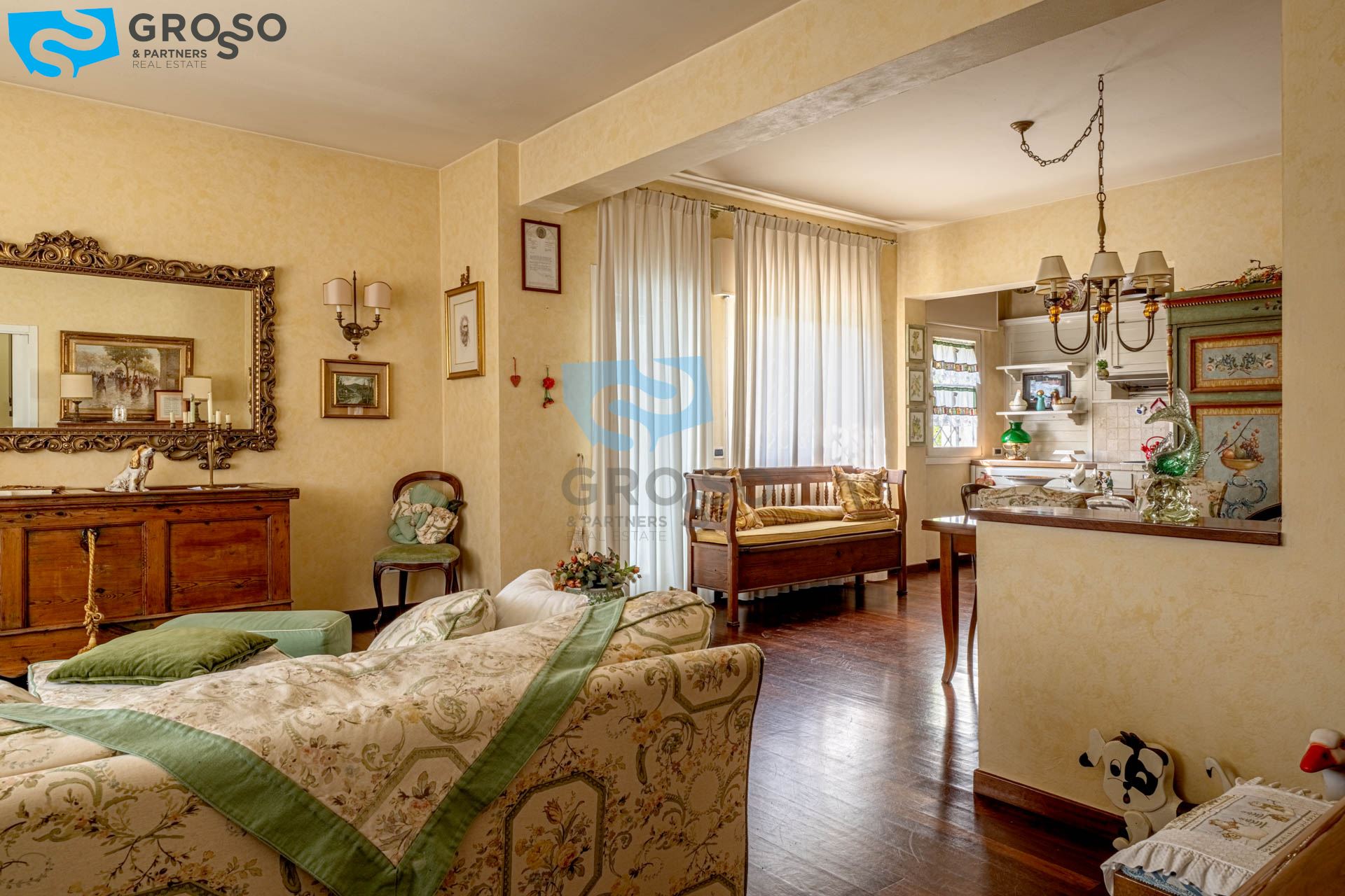 L' abitazione si distingue per gli spazi ampi e ben distribuiti. Al piano terra troviamo un luminoso soggiorno con zona pranzo, perfetto per momenti di convivialità e relax, affiancato da un pratico cucinotto separato, funzionale e ben organizzato.