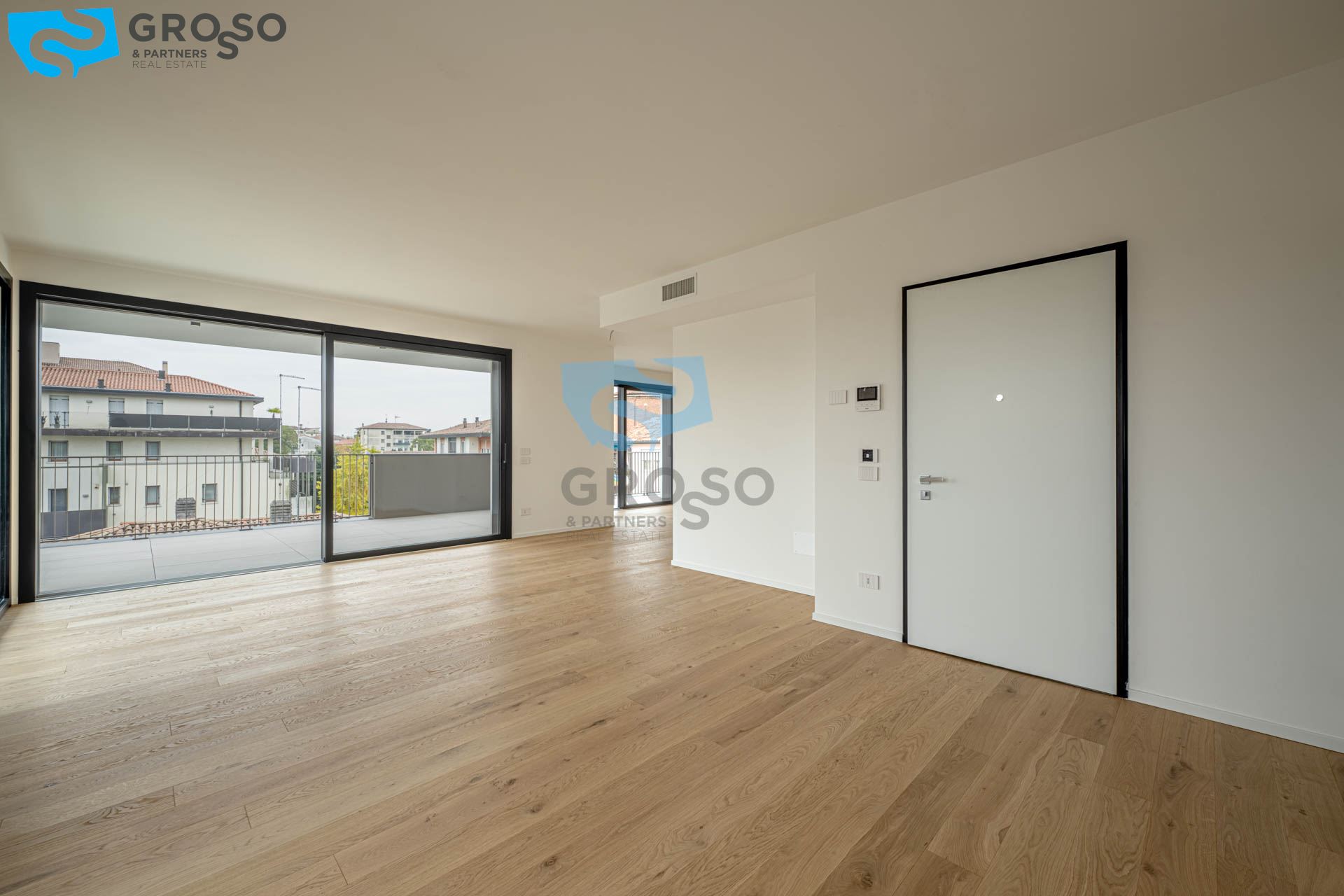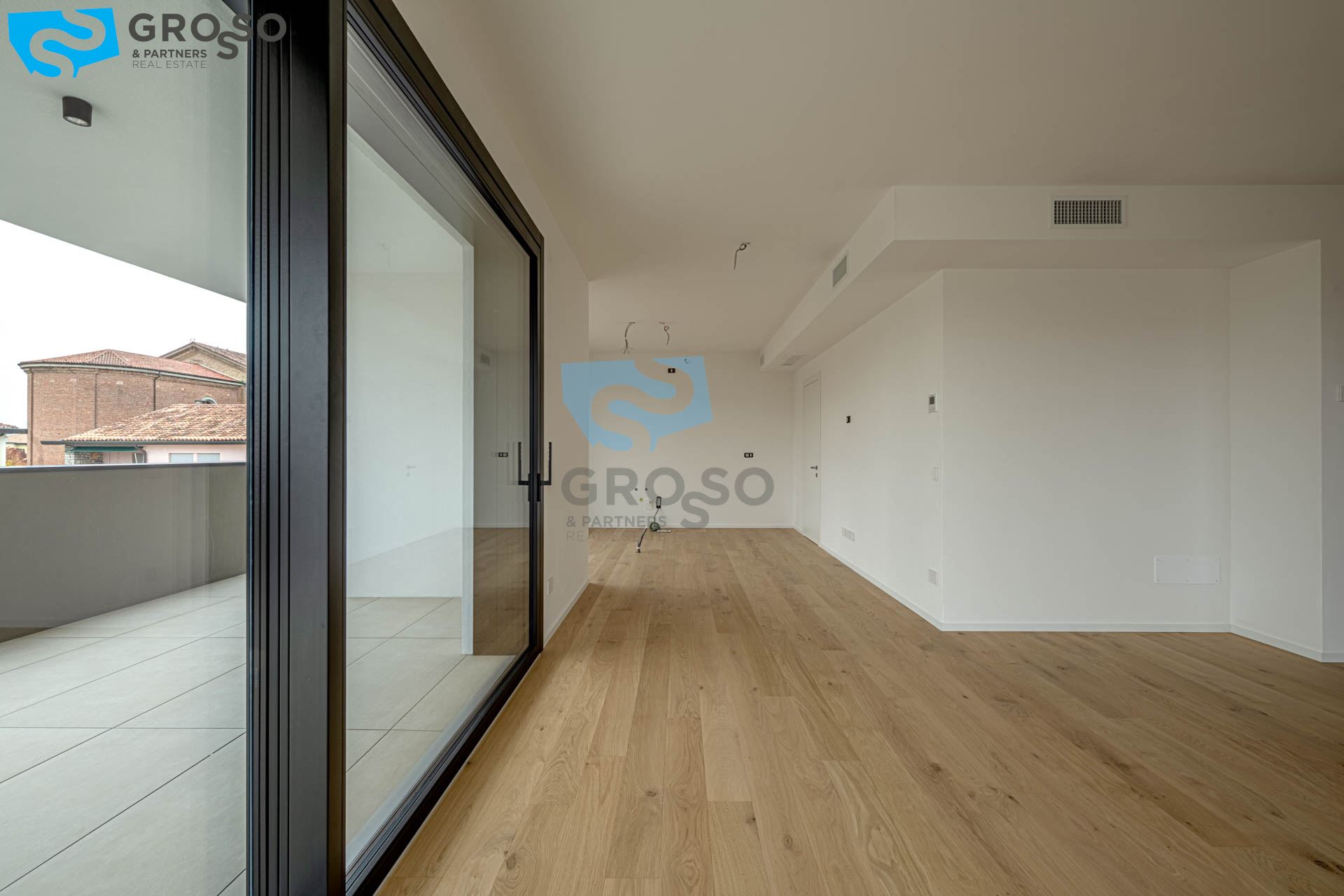L'immobile sito al piano secondo è composto da: ampia zona giorno che si caratterizza per la presenza di grandi vetrate esposte a sud, che garantiscono un'ottima luminosità e affaccio su loggia e terrazza generosa di mq. 20, accedendo alla zona notte trovano spazio 3 camere, 2 bagni, lavanderia e spazioso armadio a muro contenitivo nel corridoio notte.
