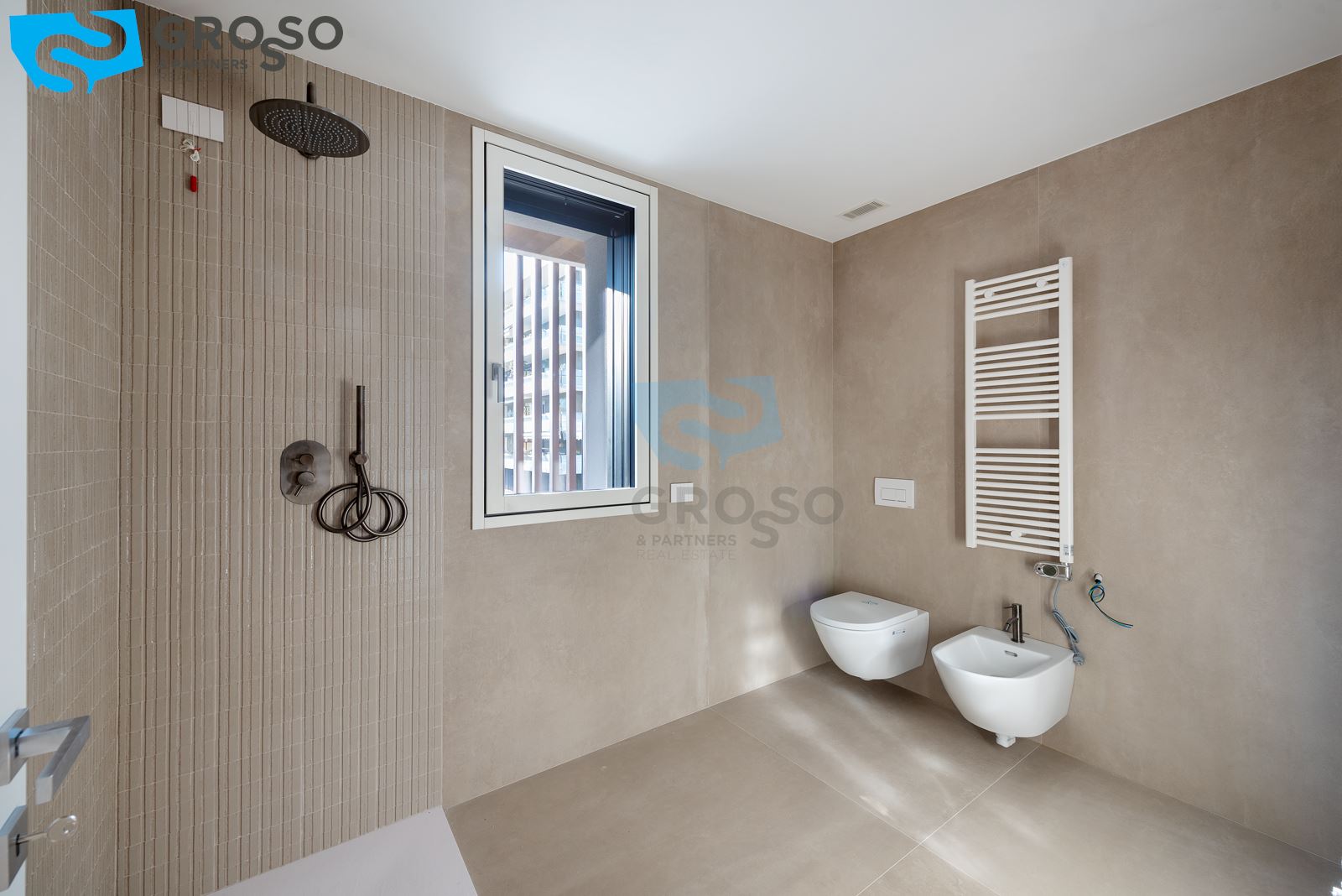 L'abitazione si sviluppa su un unico livello per una superficie interna generosa e ben distribuita. L'ingresso si apre su una luminosa zona giorno open space di 58 mq, composta da soggiorno, zona pranzo e cucina a vista, con accesso diretto alla spettacolare terrazza abitabile di 80 mq che abbraccia l'intero perimetro dell'appartamento, ideale per vivere momenti di relax all'aperto o per ricevere ospiti.