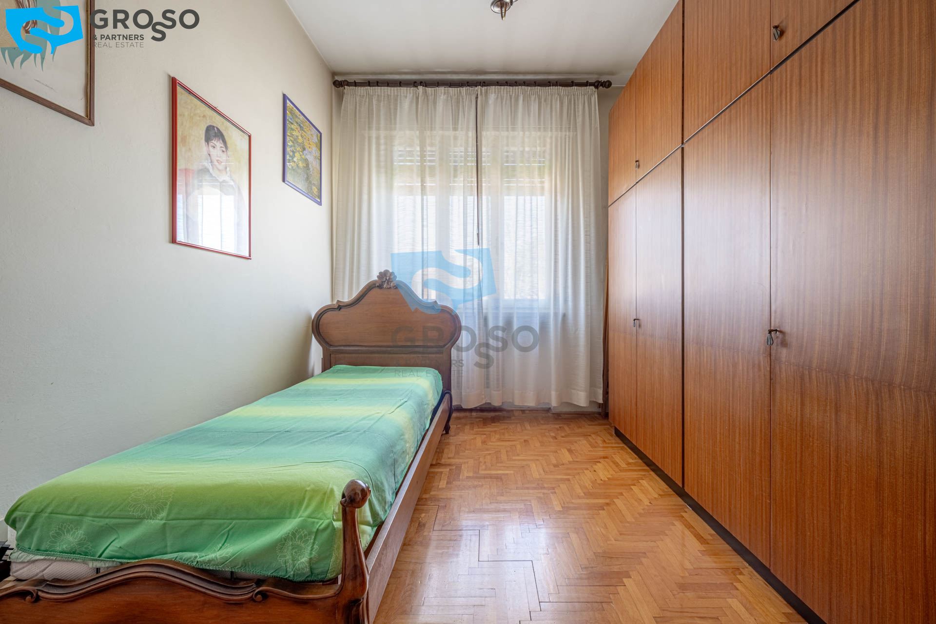 La zona notte si sviluppa con tre camere, di cui due matrimoniali e una singola, pensate per accogliere una famiglia numerosa o per essere reinterpretate in chiave investimento, creando spazi da destinare alla locazione a stanze. Il bagno completa l'abitazione, che si presenta abitabile ma pronta per una modernizzazione capace di valorizzarne appieno il potenziale.