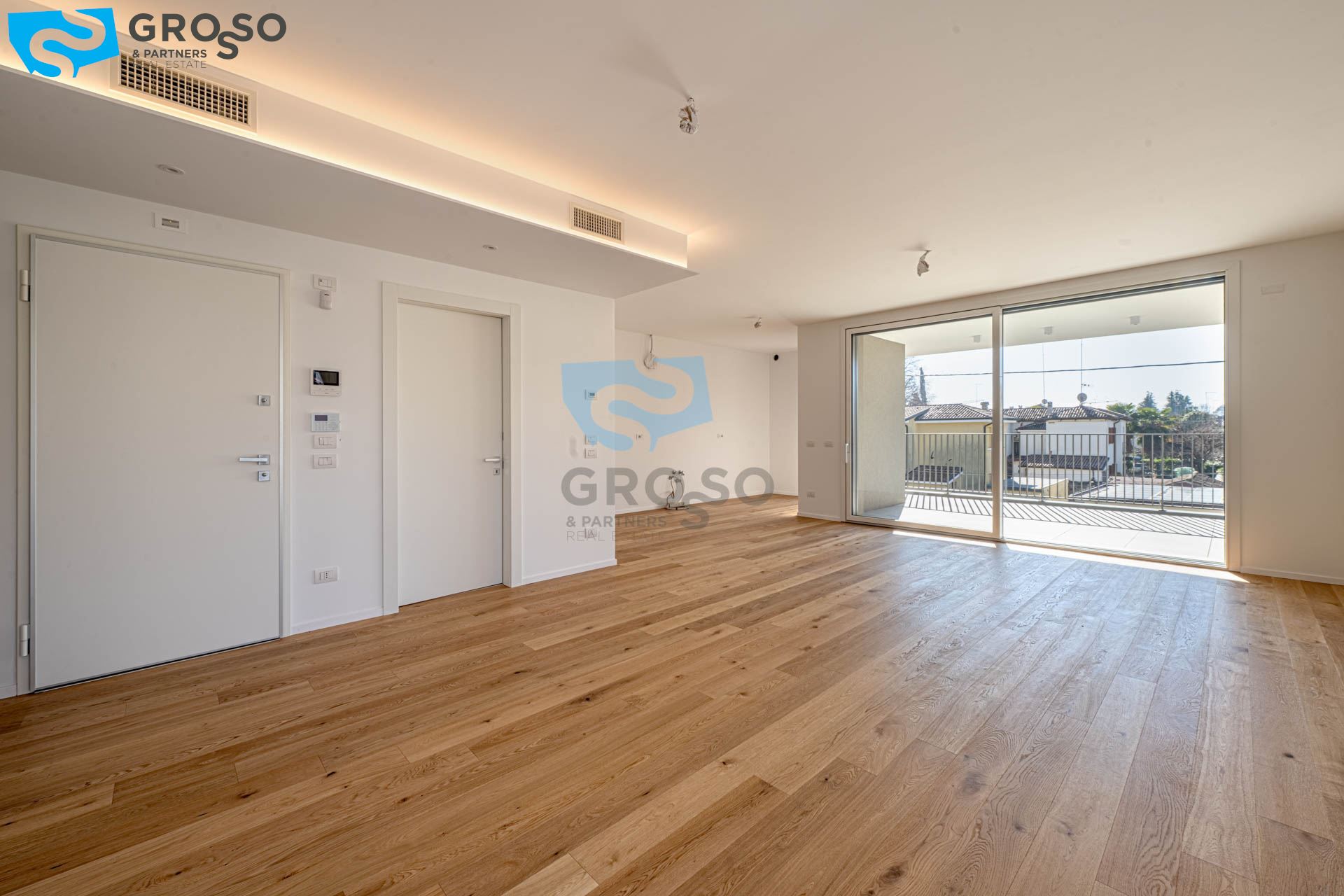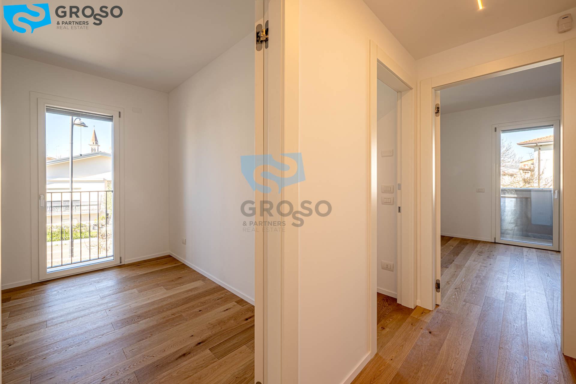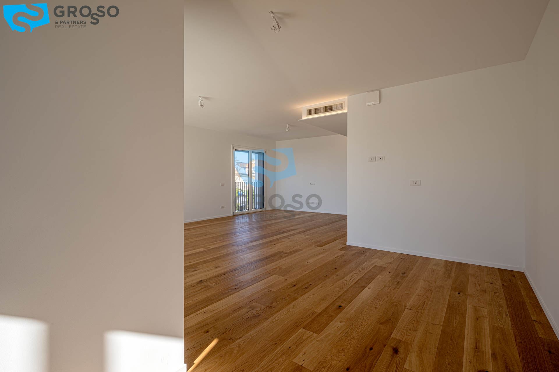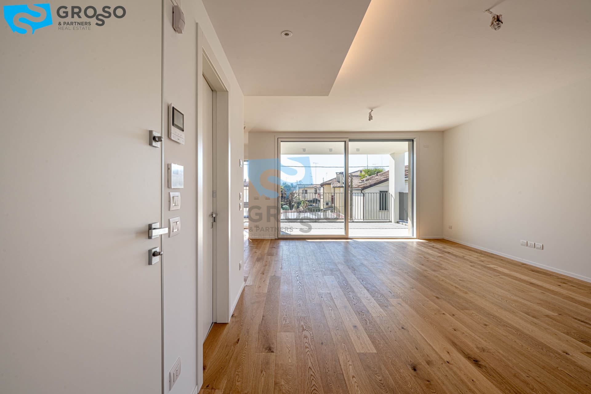 Treviso Santa Maria del Rovere, in elegante e recente contesto residenziale composto da sole quattro unità abitative realizzato nel 2025, proponiamo in vendita un raffinato appartamento situato al primo piano servito da ascensore, ideale per chi desidera vivere in un ambiente moderno, efficiente e riservato. L'abitazione si apre su un ingresso accogliente che conduce alla luminosa zona giorno caratterizzata da soggiorno con area pranzo e cucina a vista, uno spazio armonioso e ben distribuito che gode di accesso diretto a una splendida terrazza di 17 mq perfetta per momenti di relax all'aperto o convivialità. La zona notte è composta da tre camere da letto ben proporzionate, tra cui una matrimoniale, una doppia e una singola, completano la disposizione due bagni moderni e un pratico vano tecnico.