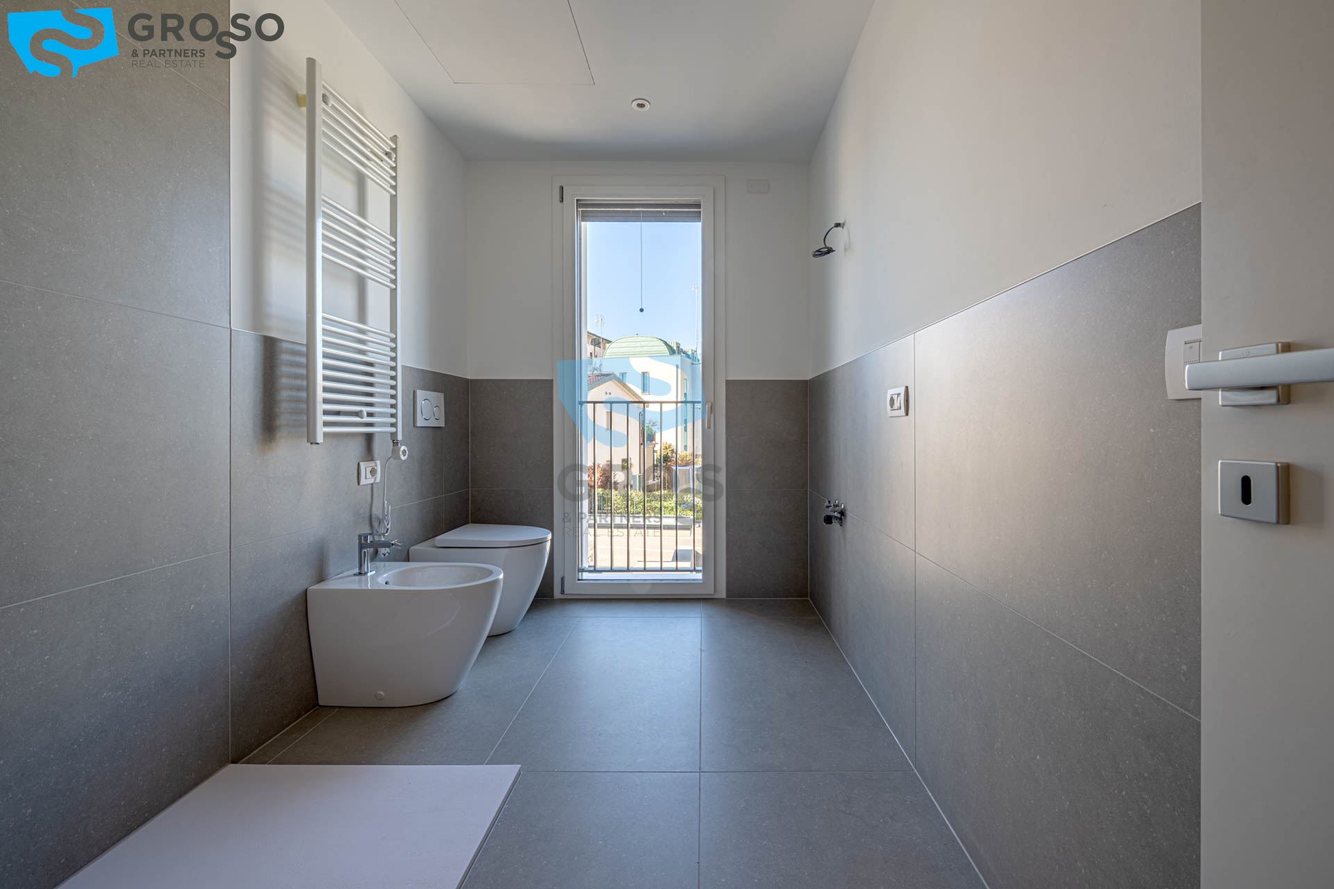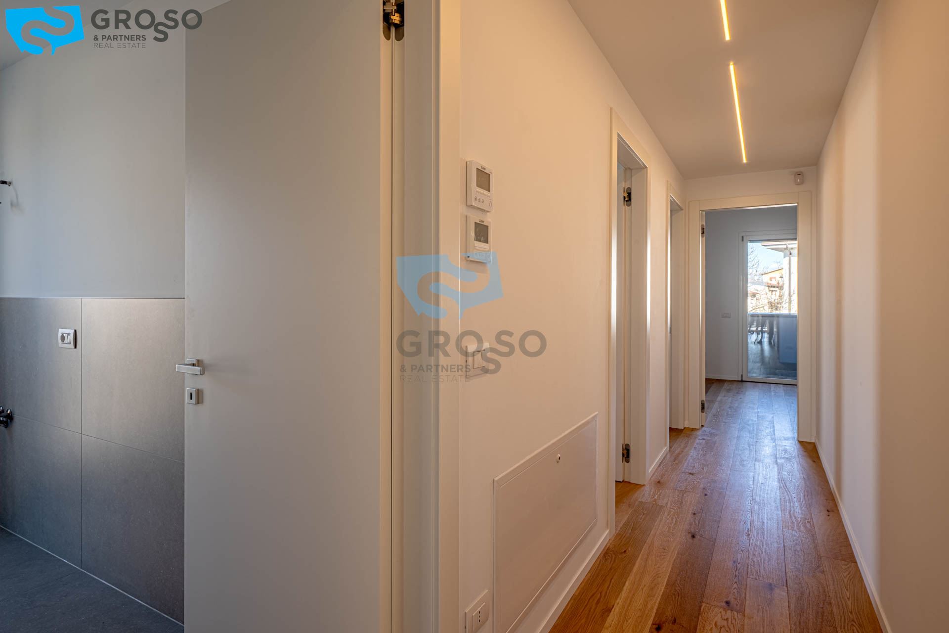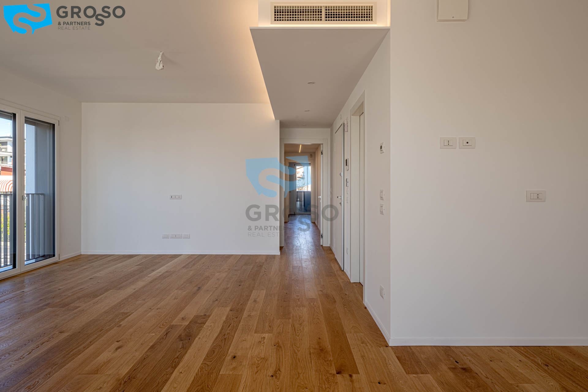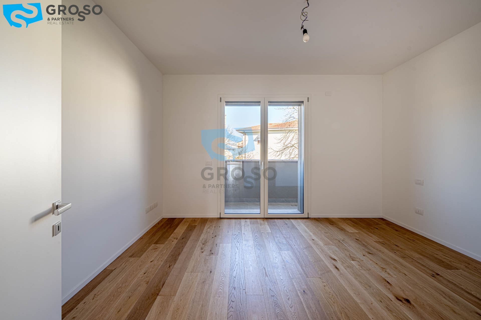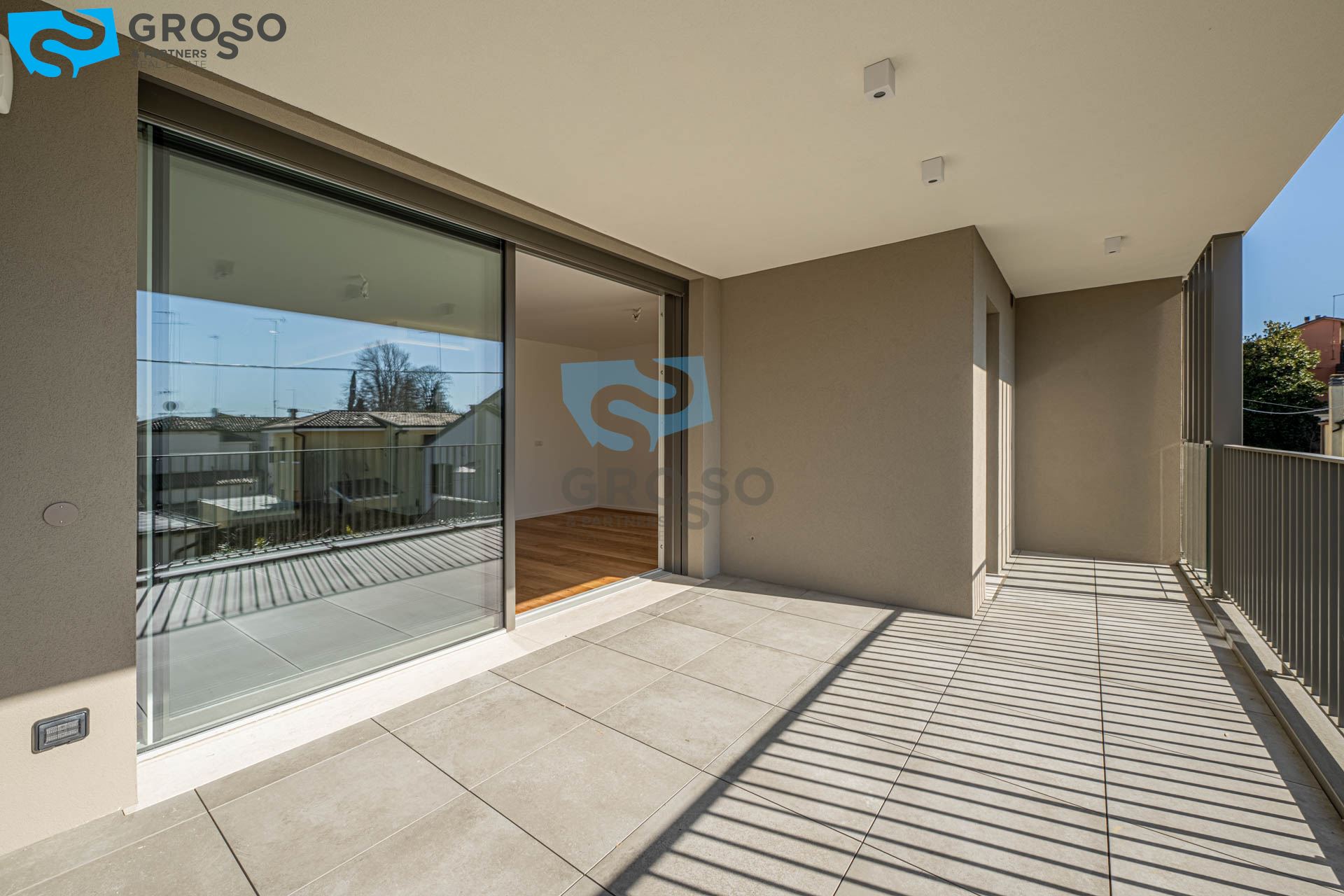 Treviso Santa Maria del Rovere, in elegante e recente contesto residenziale composto da sole quattro unità abitative realizzato nel 2025, proponiamo in vendita un raffinato appartamento situato al primo piano servito da ascensore, ideale per chi desidera vivere in un ambiente moderno, efficiente e riservato. L'abitazione si apre su un ingresso accogliente che conduce alla luminosa zona giorno caratterizzata da soggiorno con area pranzo e cucina a vista, uno spazio armonioso e ben distribuito che gode di accesso diretto a una splendida terrazza di 17 mq perfetta per momenti di relax all'aperto o convivialità. La zona notte è composta da tre camere da letto ben proporzionate, tra cui una matrimoniale, una doppia e una singola, completano la disposizione due bagni moderni e un pratico vano tecnico.