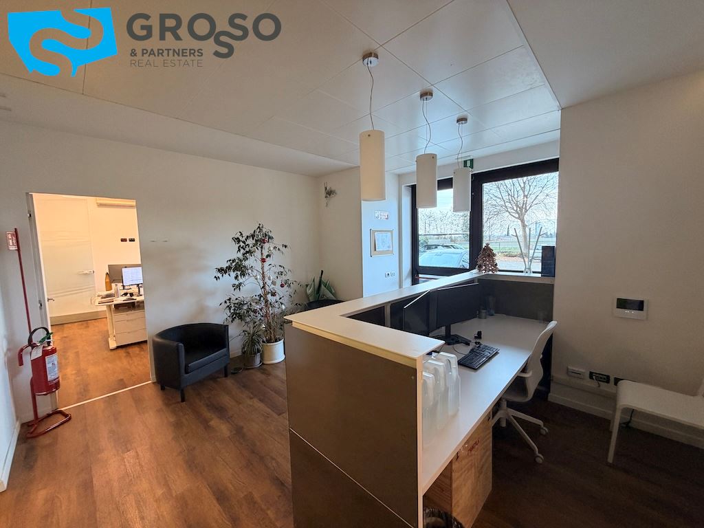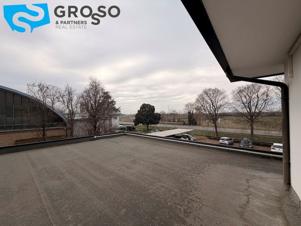 Al piano primo si trovano quattro uffici, antibagno e bagno con ampia terrazza solarium che può accogliere eventi. Completano la proprietà 38 posti auto esterni a servizio dell'immobile in un'area di 2000 mq. Viene garantita una rendita annua del 9% con contratto di locazione in essere con scadenza a fine 2031, rappresentando una soluzione ideale per investitori alla ricerca di un immobile a reddito in zona ben collegata e ad alta visibilità.