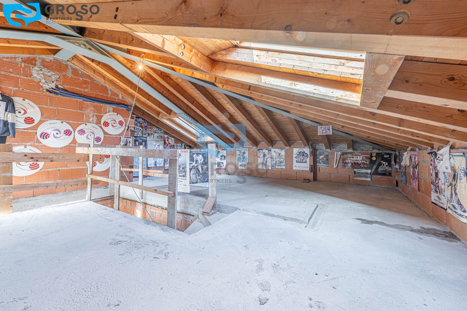 L'immobile, con predisposizione per ascensore interno, è disposto su più livelli. Al piano seminterrato un garage doppio di 37 mq, un ripostiglio e una centrale termica. Al piano rialzato sono presenti un soggiorno con zona pranzo, una cucina separata e un bagno per ospiti. Al primo piano l'immobile dispone di tre camere, di cui due matrimoniali, e un bagno nella zona notte. Il piano sottotetto comprende due ulteriori camere matrimoniali e un bagno.