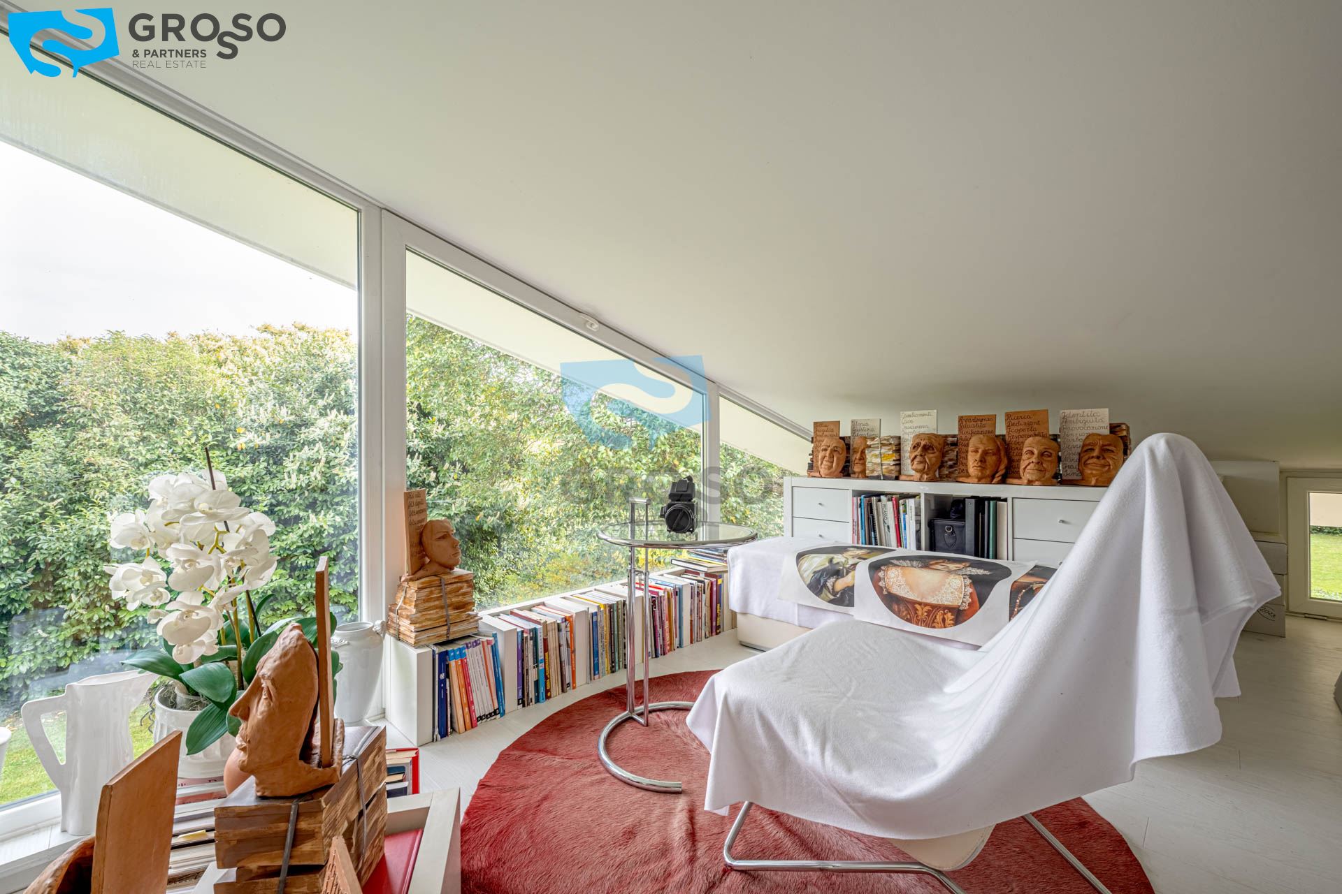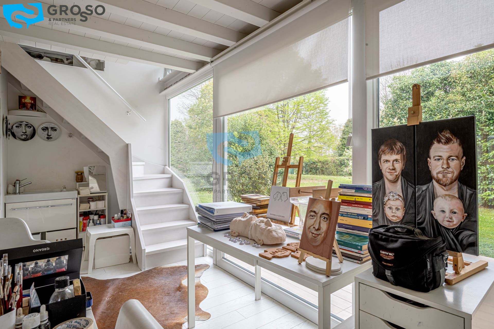 Splendida villa singola di ampia metratura immersa nella tranquillità della campagna di Villorba, caratterizzata da un elegante stile rustico ma elegante e circondata da uno spettacolare parco privato di circa 5.000 mq. L'immobile si sviluppa su due piani fuori terra ed è attualmente suddiviso in due unità: il corpo principale destinato ad abitazione e una seconda unità adiacente di circa 140 mq ad uso direzionale. L'abitazione principale offre ambienti spaziosi e ben distribuiti: ingresso accogliente, luminoso soggiorno con zona pranzo, cucina abitabile, studio, una camera matrimoniale con bagno privato e una comoda lavanderia. Al piano superiore si trovano tre ampie camere servite da un ulteriore bagno. Recentemente è stato realizzato un elegante ampliamento che ospita uno studio su due livelli, caratterizzato da un design moderno e valorizzato da grandi vetrate che garantiscono luce naturale e continuità con l'esterno.